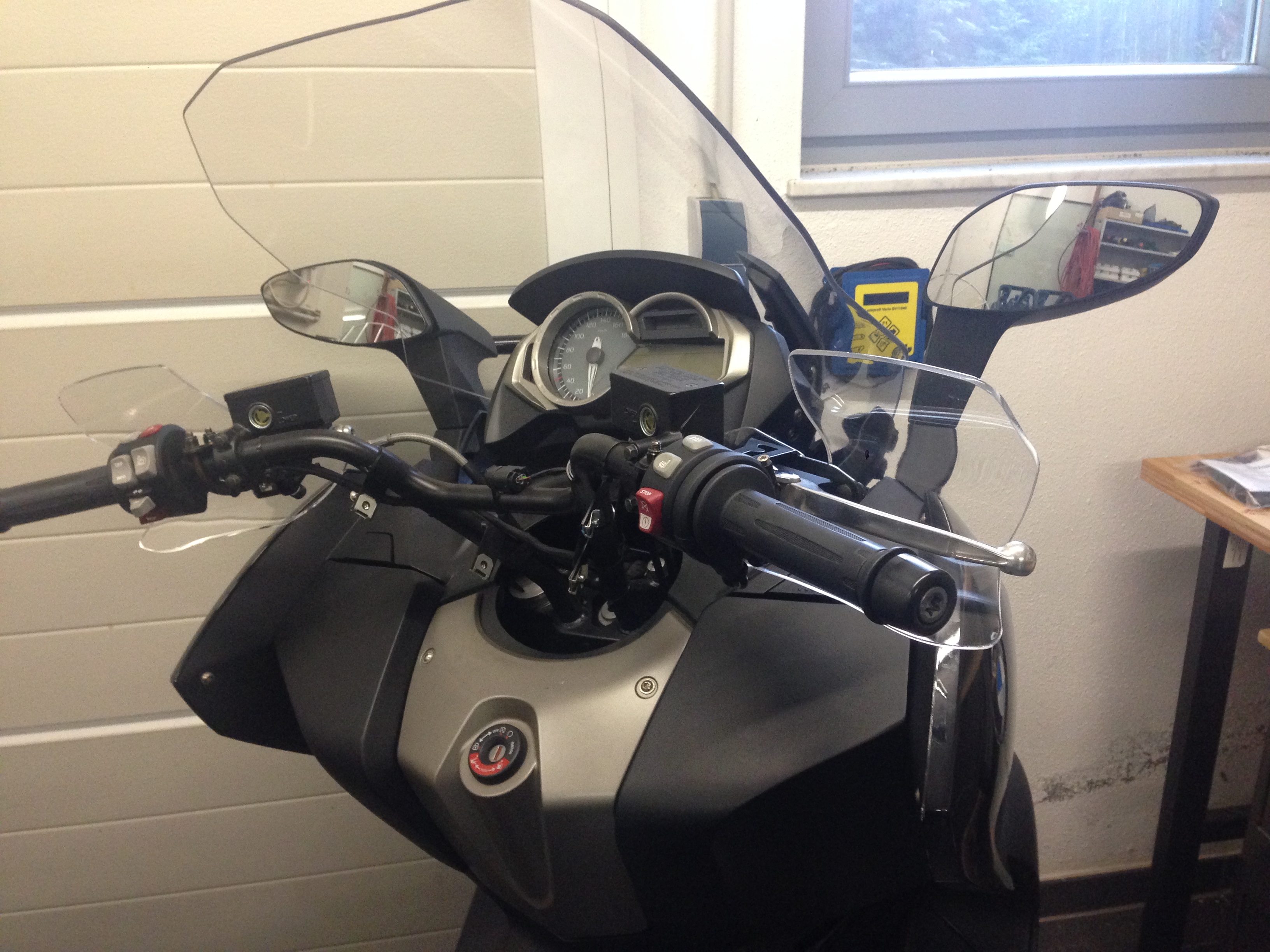 Deshalb habe ich dann die Givi Deflektoren am Oberteil del Verkleidung montiert. 80% der kalten Luft wird von den Handschuhen abgewiesen, die Beine bleiben im Windschatten. Montage ist wesentlich einfacher. Keine Beanstandungen wegen Einfluss auf die Stabilität des scooters.