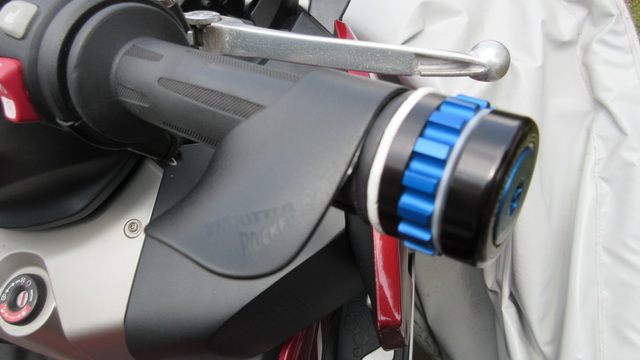 Wie ein Tempomat. Man klemmt den Gasgriff minimal fest so das er sich nicht von selbst verändern kann, hat aber immer die Möglichkeit