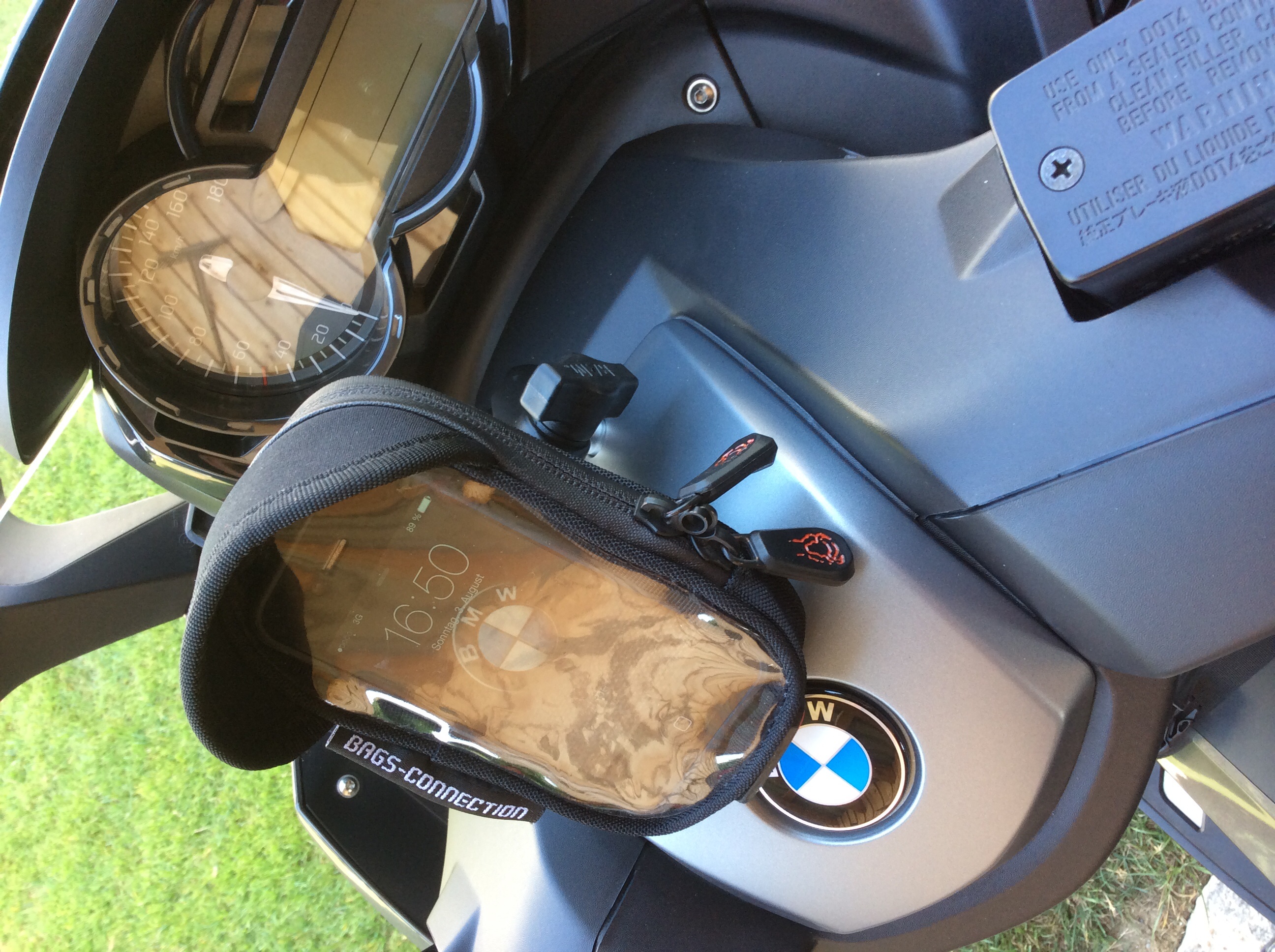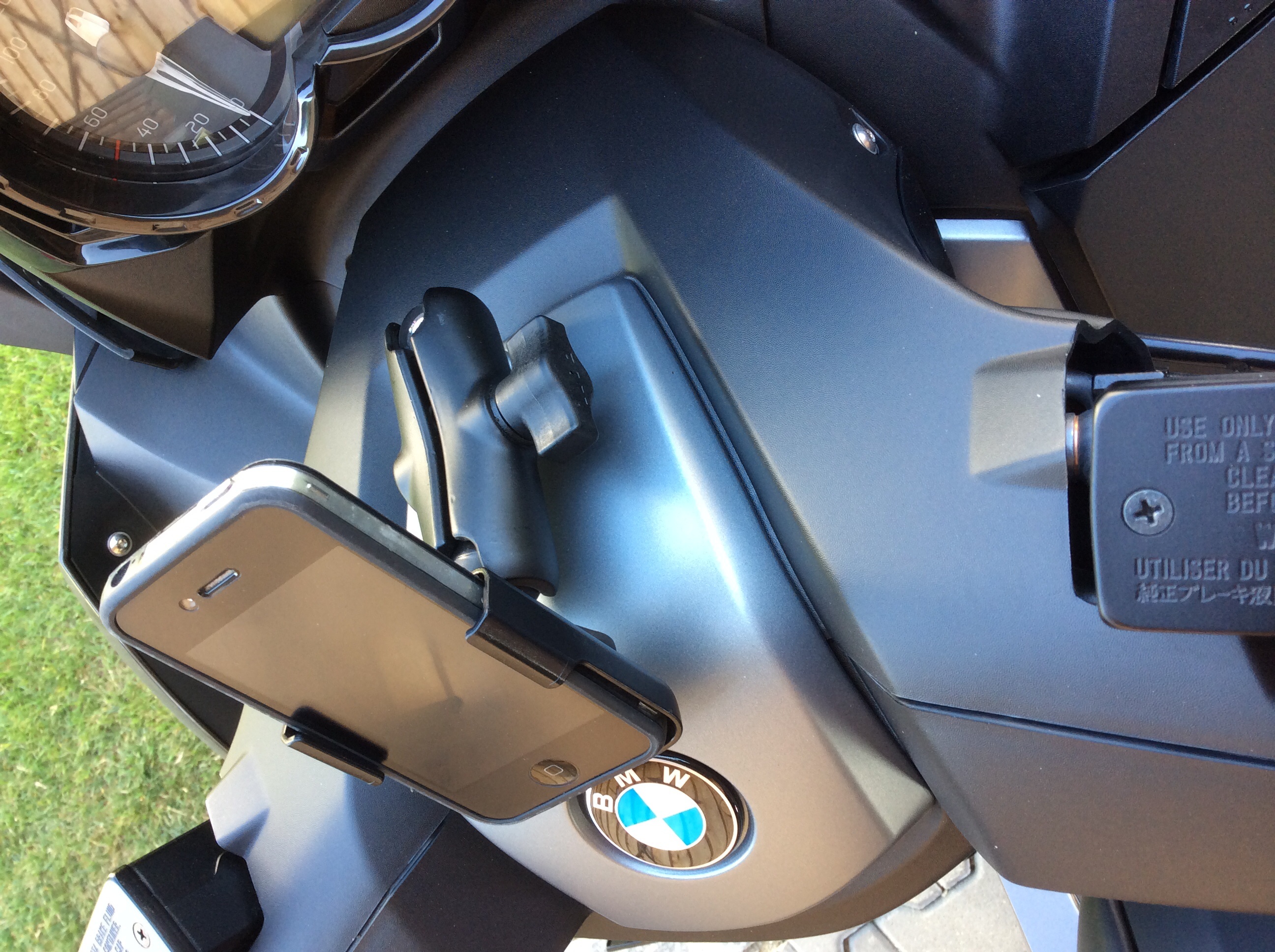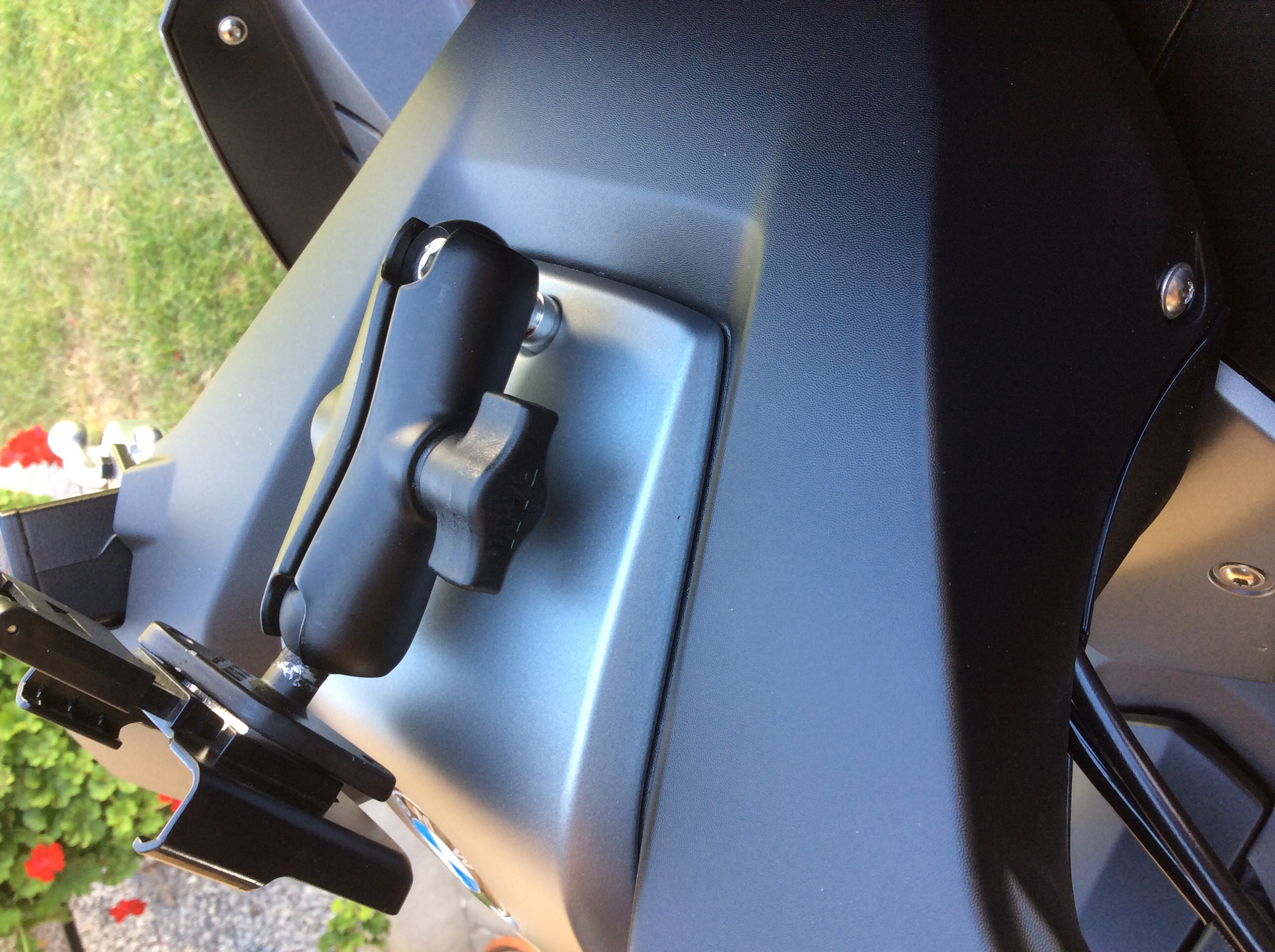 Wobei auch Gerds und meine Lösung die Schraubpunkte über Gebühr belasten. Hier nur mit den harmloseren Folgen von Verkleidungsbrüchen. Bei Gerds Lösung kommt noch die Kraft des langen Hebelarms zum Gewicht von Halter und Phone dazu.