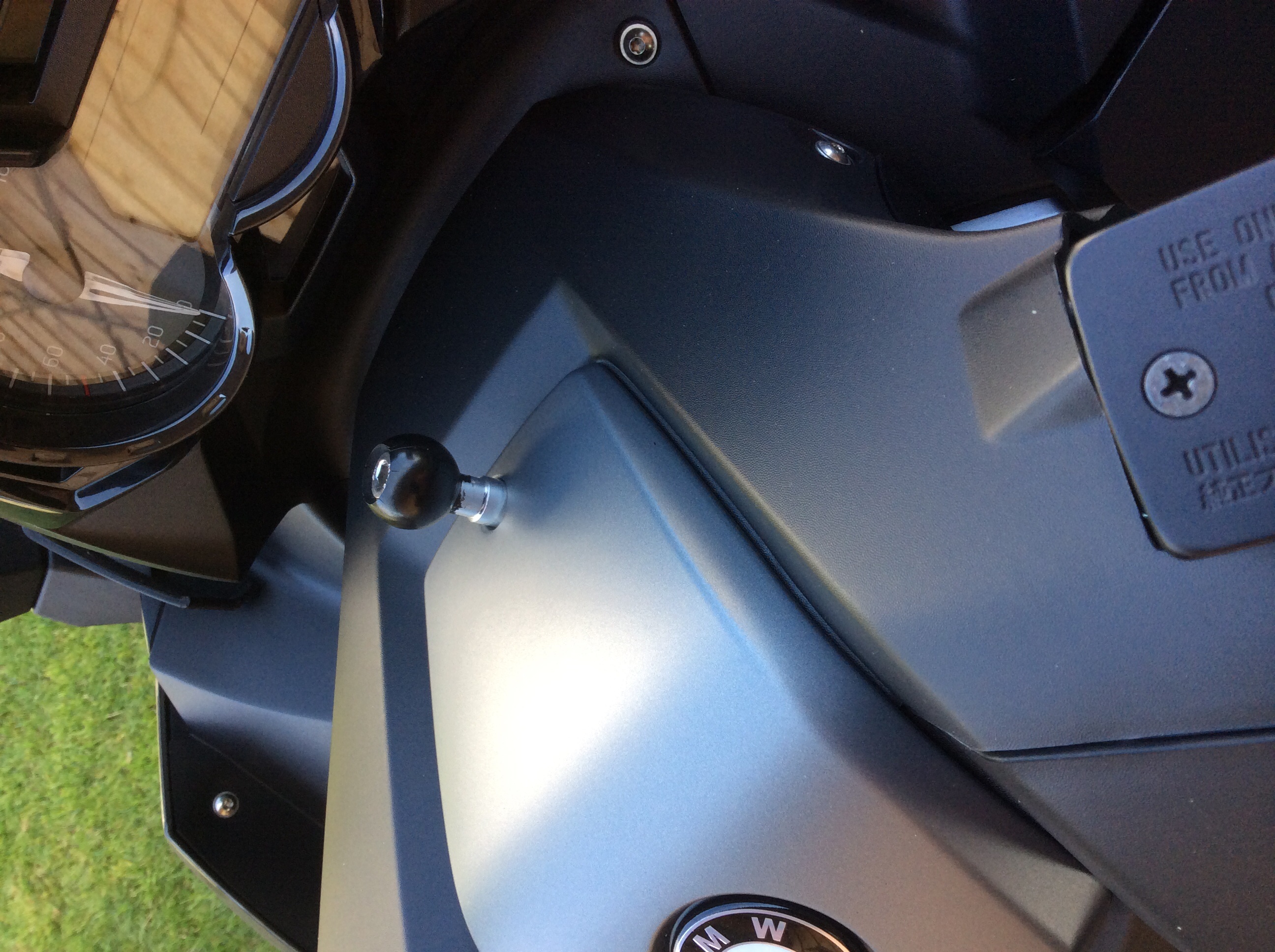 Wobei auch Gerds und meine Lösung die Schraubpunkte über Gebühr belasten. Hier nur mit den harmloseren Folgen von Verkleidungsbrüchen. Bei Gerds Lösung kommt noch die Kraft des langen Hebelarms zum Gewicht von Halter und Phone dazu.