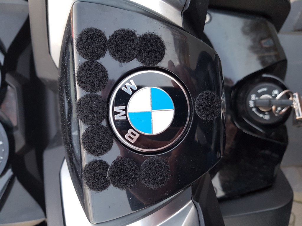 Die Tasche wird auf das BMW-Symbol gesetzt und lässt so den Blick auf das Cockpit frei.