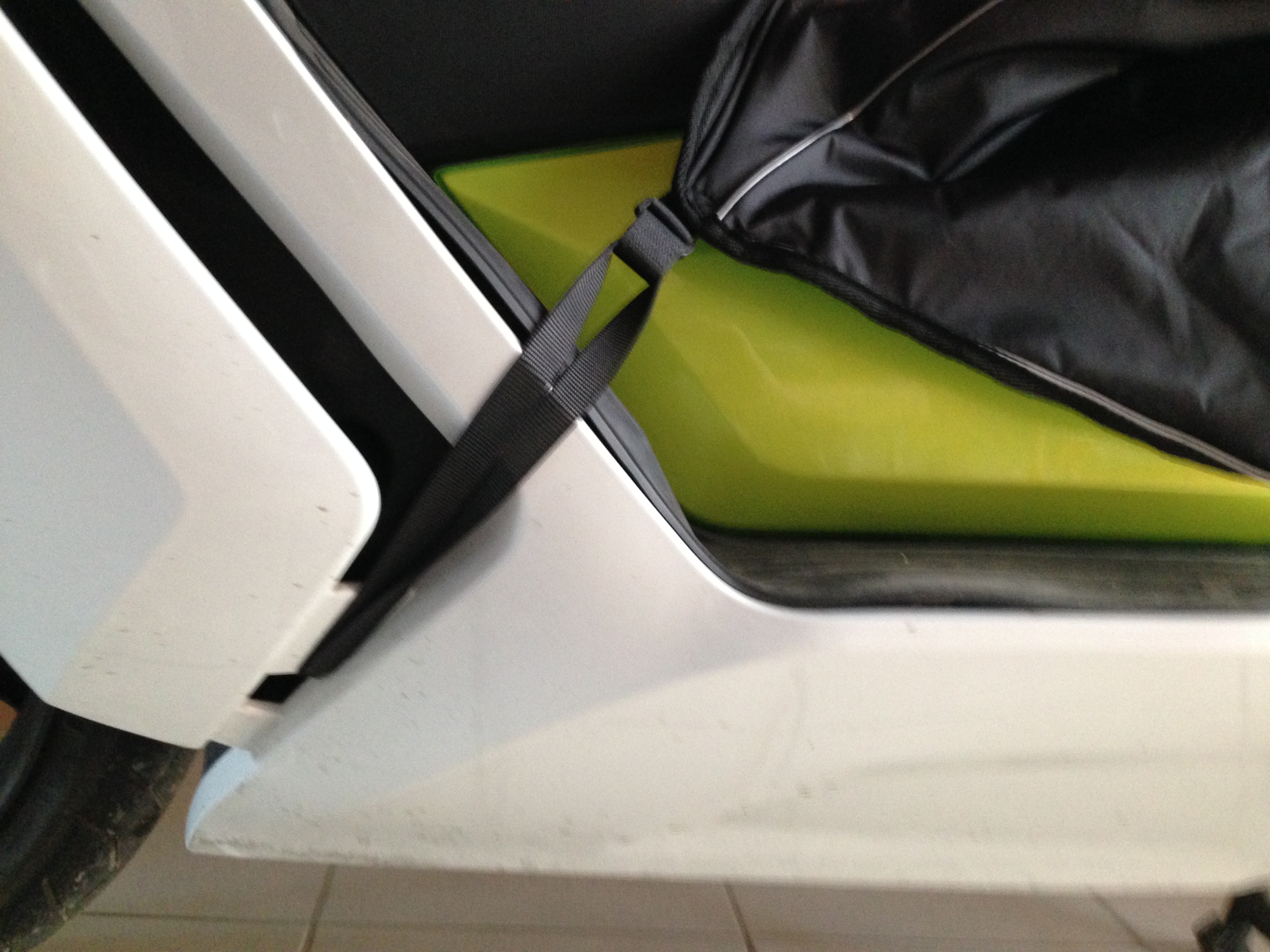 Habe mir auch de 25 Euro Variante geholt, allerdings kam bei mir das cover ab ca. 70km/h hoch. Und das mit dem Latz / Gurt fand ich unpraktisch. Ich habe jetzt meine Lösung gefunden: