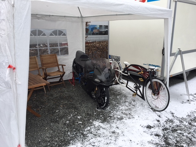Kurzerhand das Bike die Strecke zur Messe geschoben!