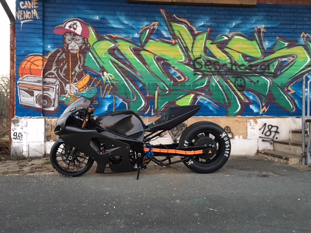 Da nun der Fender voll auf dem Reifen auflag, habe ich ihn etwas mit der Flex bearbeitet Und nun entspreche ich au da den Regeln des DMSB!