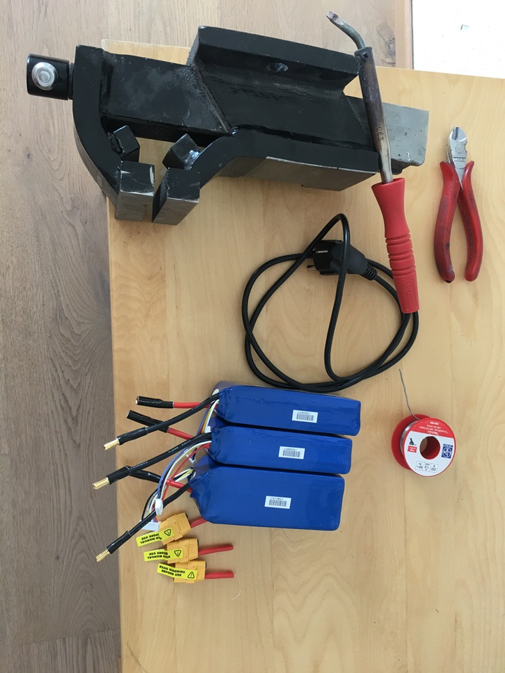 Für Alkersleben noch schnell die 3 Akkus mit 5,5mm Buchsen/Steckern versehen.