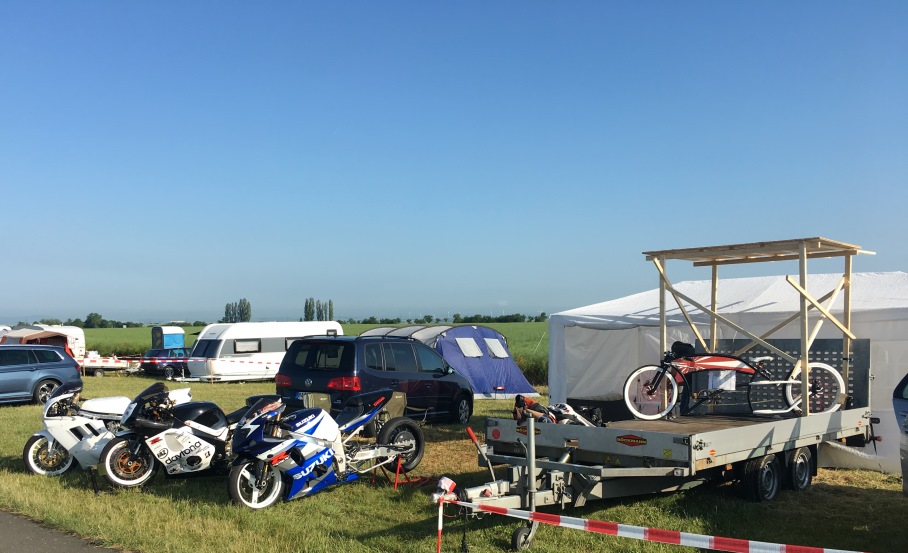 Da die Strecke wahrscheinlich wieder weit abgesperrt ist und zu 90% das Gras nicht geschnitten, hatten wir letztes Jahr spontan und auf die Schnelle einen Hochsitz aus ein paar Dachlatten und Brettern vom Baumarkt zusammen gezimmert: Somit hatten wir eine gute Sicht auf die Strecke