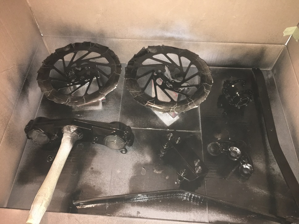 Nachdem ich jetzt nun Rahmen, Schwinge und Heckträger zum Pulvern abgegeben habe wollte ich ein paar unbedeutende Teile selber lackieren.