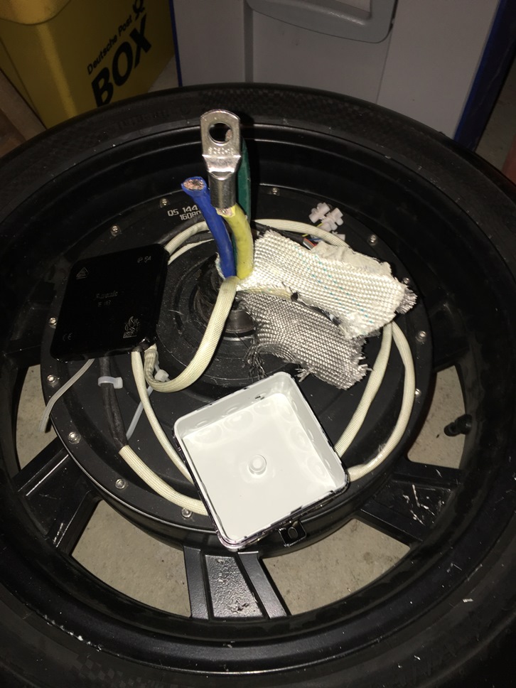 Ist schon interessant zu sehen, wie es unter dem schwarzen Schutzschlauch aussieht, in dem die 3 Phasen und das Signalkabel zusammen drin lagen. Da gibt es sogar einen Farbwechsel zwischen den Phasen (Blau und Gelb sind vertauscht).