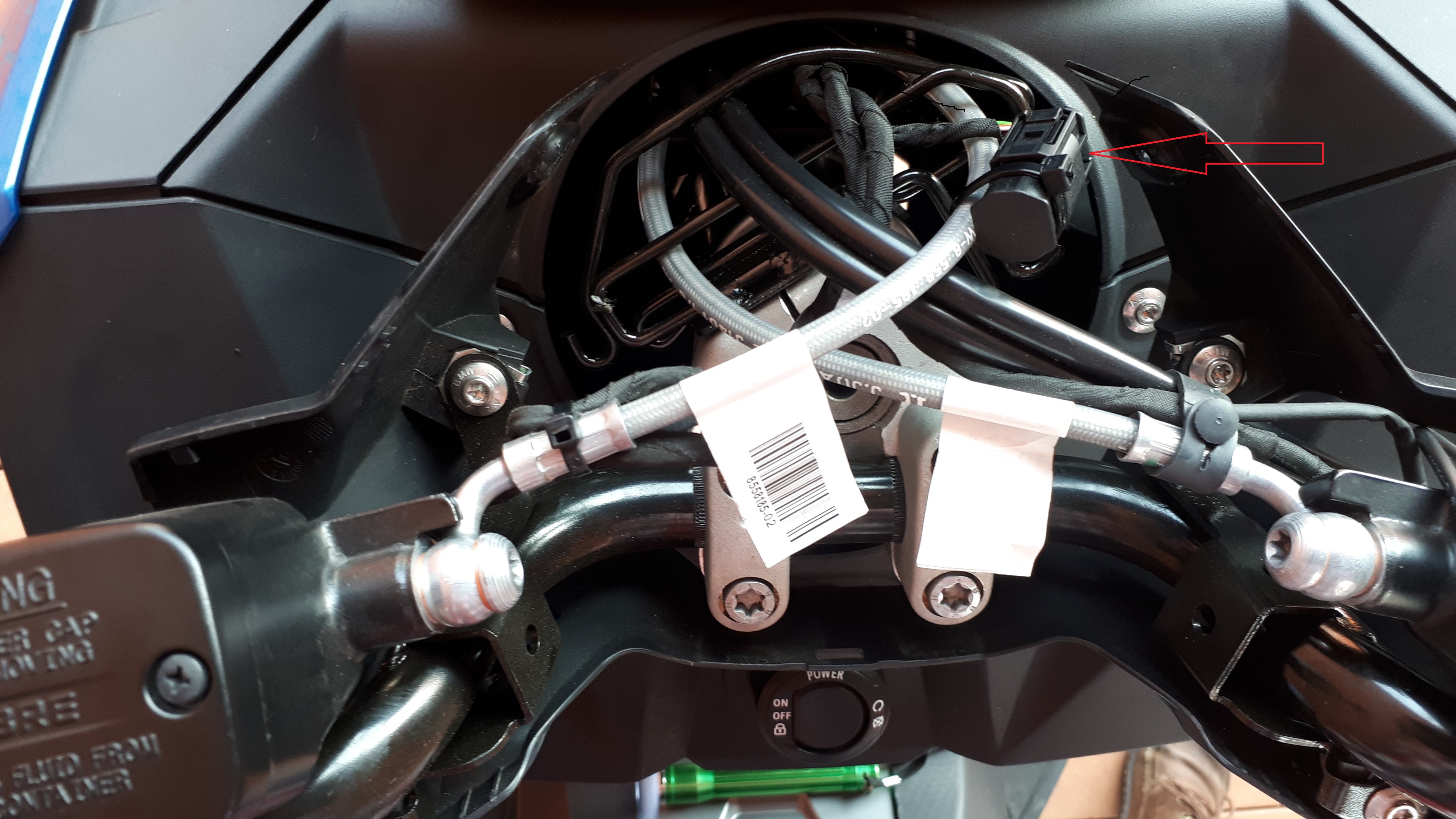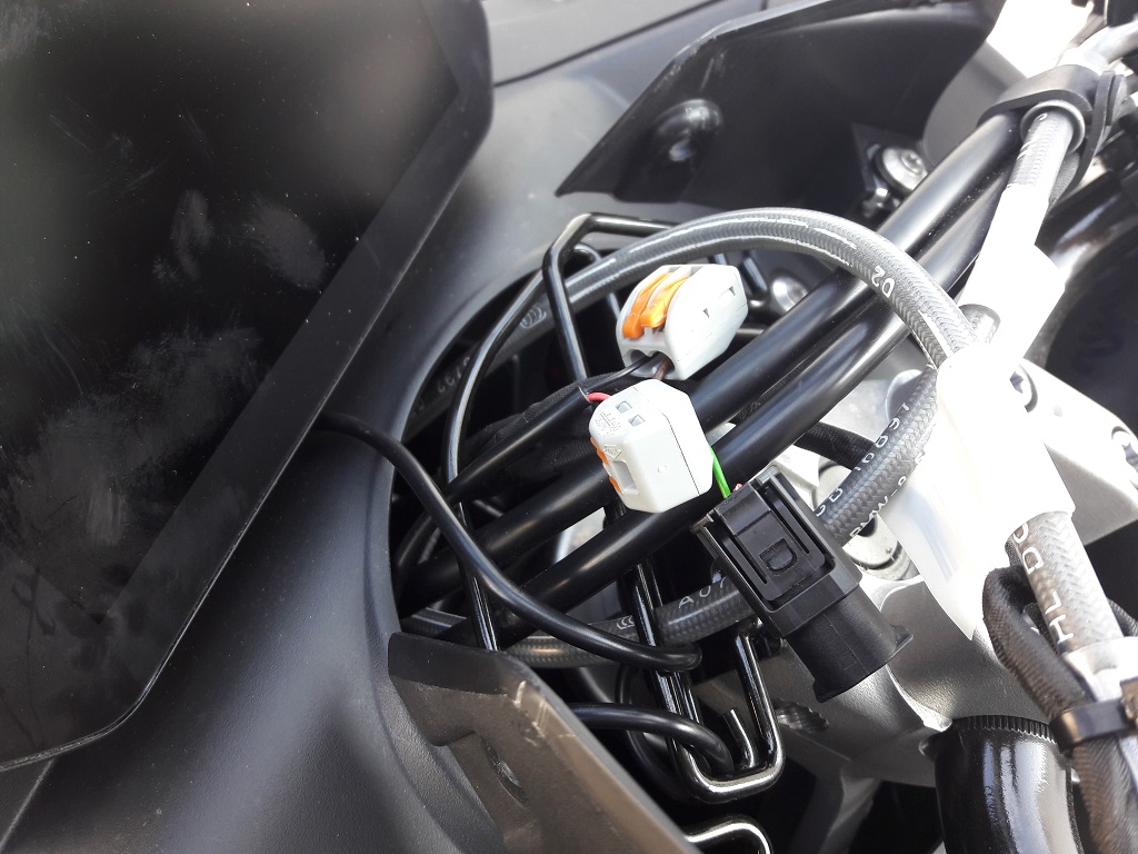 Wunderlich schlägt in der Anleitung vor, das Kabel hinter das TFT zu klemmen und dann in den Bereich des Lenkers zu ziehen. Da wird ja irgendwo Saft liegen, z. B. für das Originalnavi von BMW