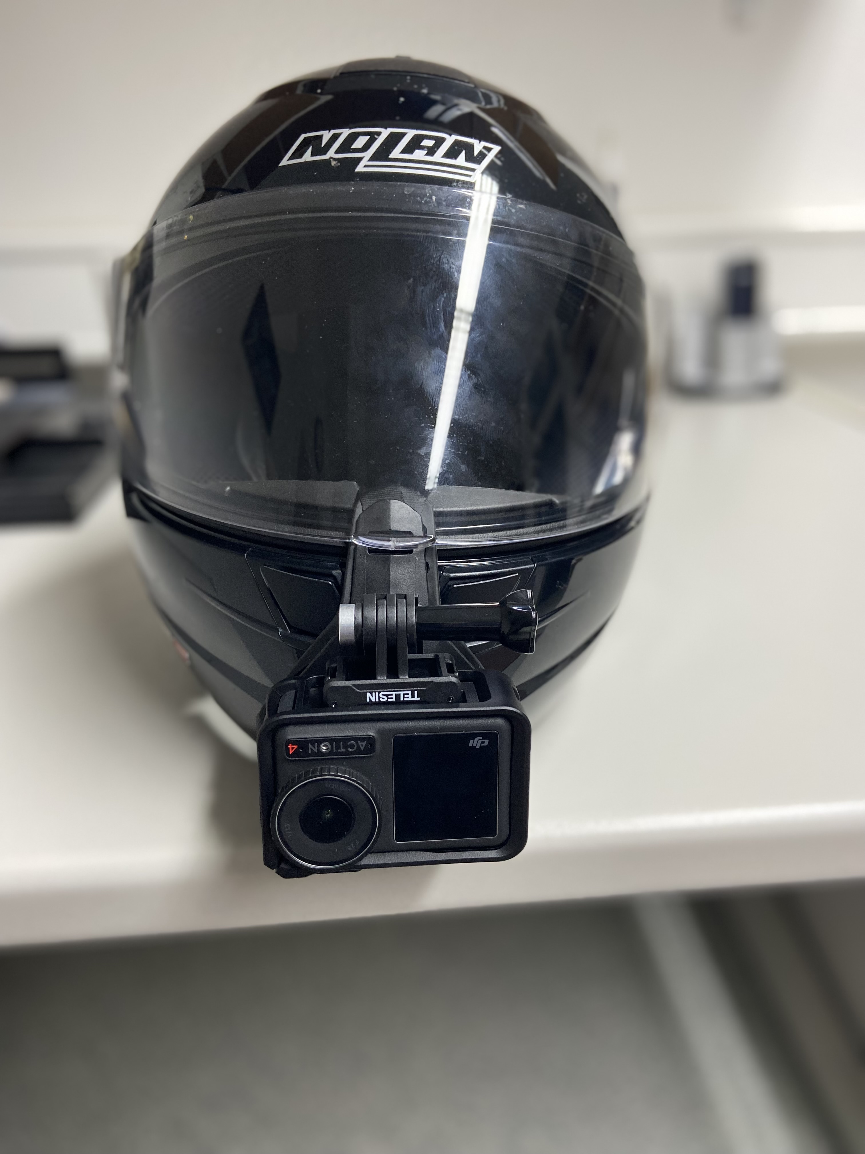Ich habe mir eine Halterung für den Helm und eine Halterung für den Spiegel besorgt.