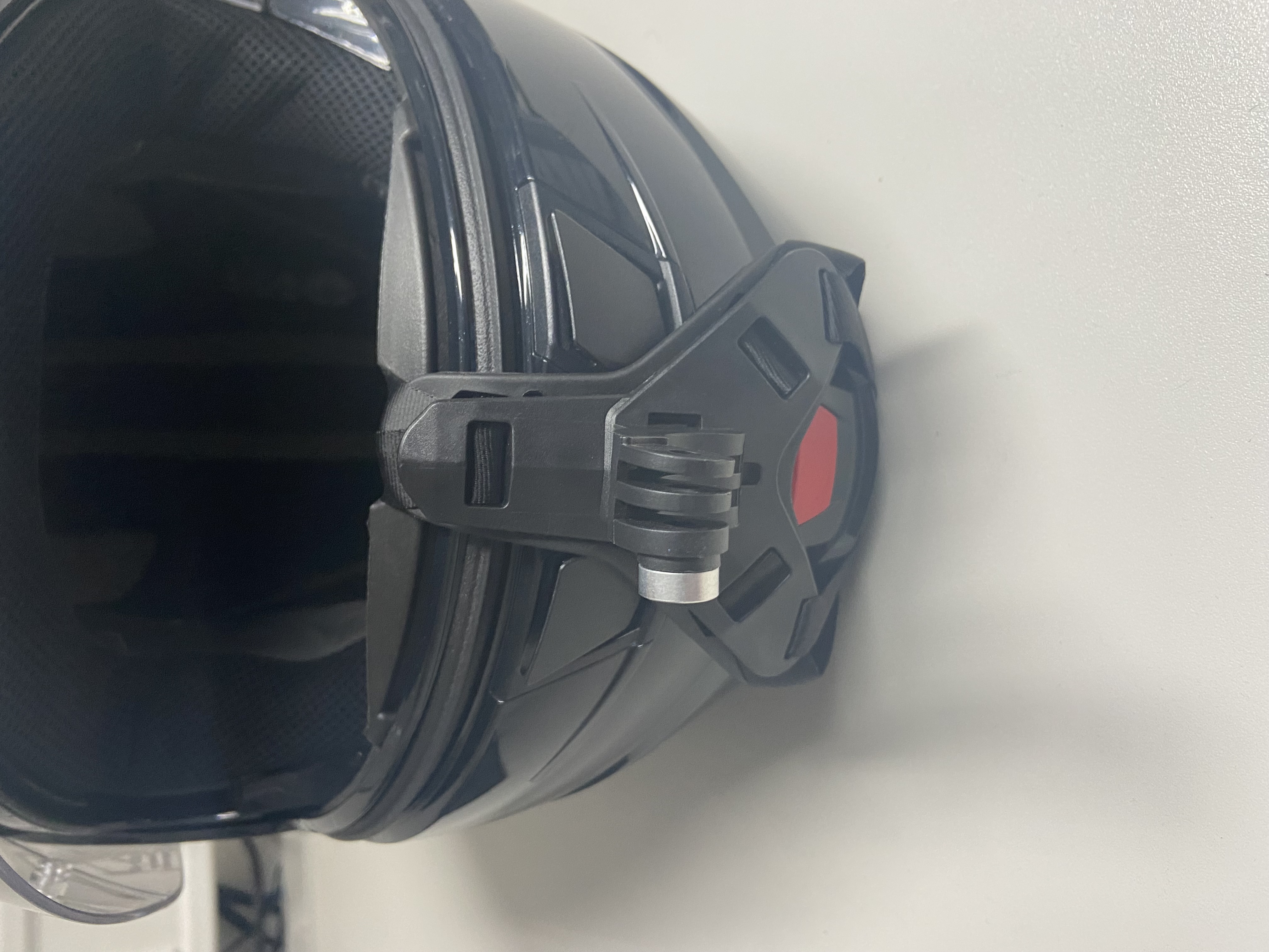 Das ist die Helmhalterung von Temu. Kostet unter 4 Euro und hebt bombenfest an einem Klapphelm. Die Funktion ist nicht eingeschränkt.