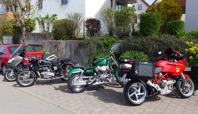 Hallo zusammen , ich heiße Carlo , bin 60 Jahre alt und habe mich hier angemeldet da ich beabsichtige mir einen GT 650 (ab BJ.16) zuzulegen . Ich fahre durchgehend seit 1977 (Mopped) .Mein derzeitiger Fuhrpark besteht aus einer getunten Harley Sportster Bj94 ,einer 1961 BMW R 27 , einer Ducati Multistrada DS 1000 und einer fahrenden Einkaufstasche Peugeot Satelis 2 125ccm . Bin eher der Tagestourabsolvent (450km mit der R27 ,600Km mit der Sporty und 800-1000km mit der Multi ) als ein Heizer . Selbst der Roller hat oft Tagesleistungen von 250km . Ich bin körperlich extrem fit (calisthenics und wing-tsun ) aber habe von meinem Vater das ital. Gardemaß von 175cm bekommen . Das bedeutet die Multi muß irgendwann weg ! Damals wurde der Gitterrohrrahmen der Sportmodelle genommen an denen alles drüber gesetzt oder drunter gehängt wurde . Mit den Federwegen ist die Sitzhöhe für mich auf Dauer zu hoch (Die heutigen Multis haben eine Rahmenform in die alles integriert wird ,da sitzt man tiefer ,aber ich will keine 160 Ps.) Eine Rechtskehre mit Gefälle in den Alpen mit Frau und Gepäck bedeutet daß bei einer Notbremsung mein rechtes Bein gut 20cm vom Asphalt weg ist während die Fuhre in Schräglage steht . Das fang ich nicht mehr lange auf . Es anders zu betrachten ist Wunschdenken und irrational ! Deswegen ,da ich als Halbitaliener ohnehin nie Animositäten gegen Roller hatte ,beschäftige ich mich mit dem 650GT . Für den 400er würde ich kein Geld ausgeben , da die oberste Priorität Napoli mit 2 Personen lautet , ist der platzmäßig ein Witz ,abgesehen von der Leistung . Und nein , der Satelis
