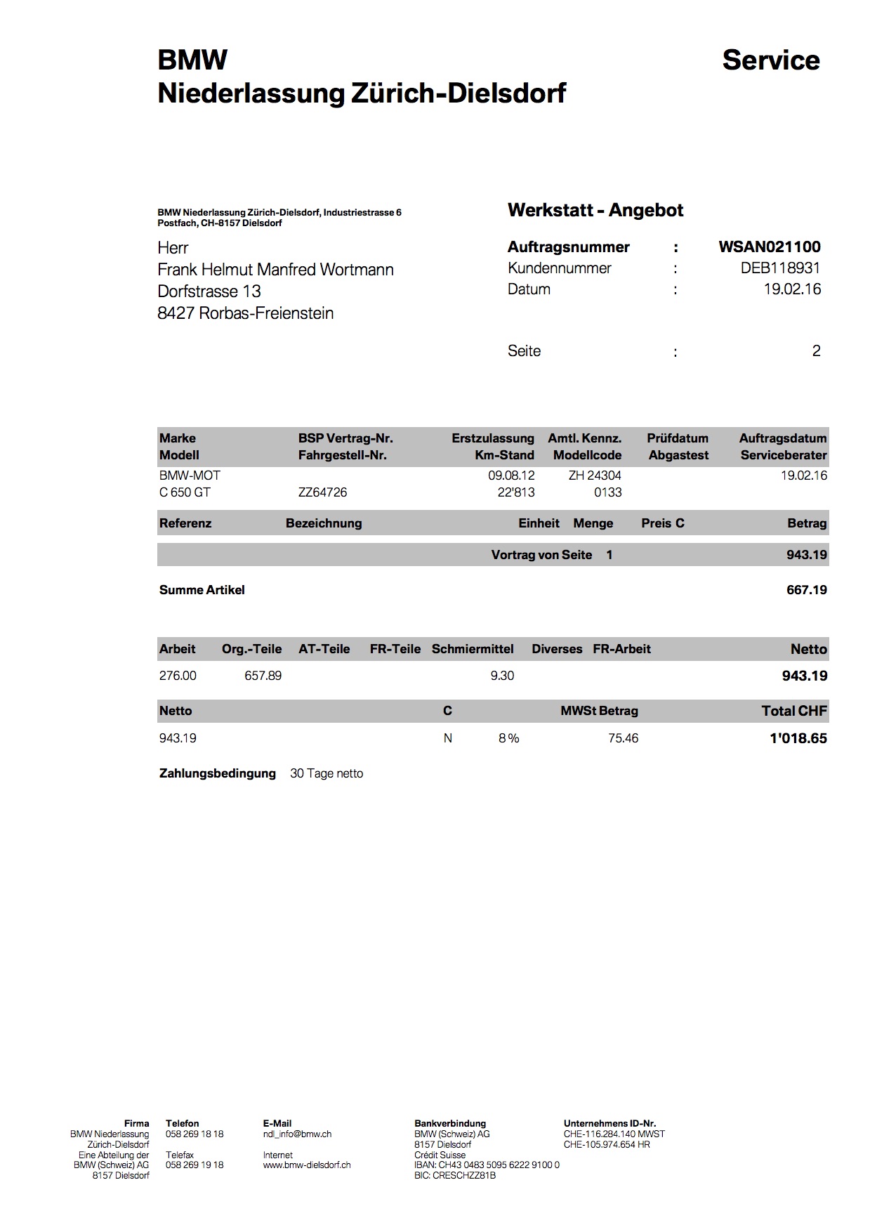 ich habe die original Offerte für die Wartung 20000 Km angefügt.