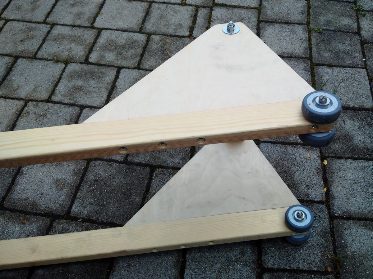 Latten, Multiplex-Platte, Spax, Leim, vier Rollen.