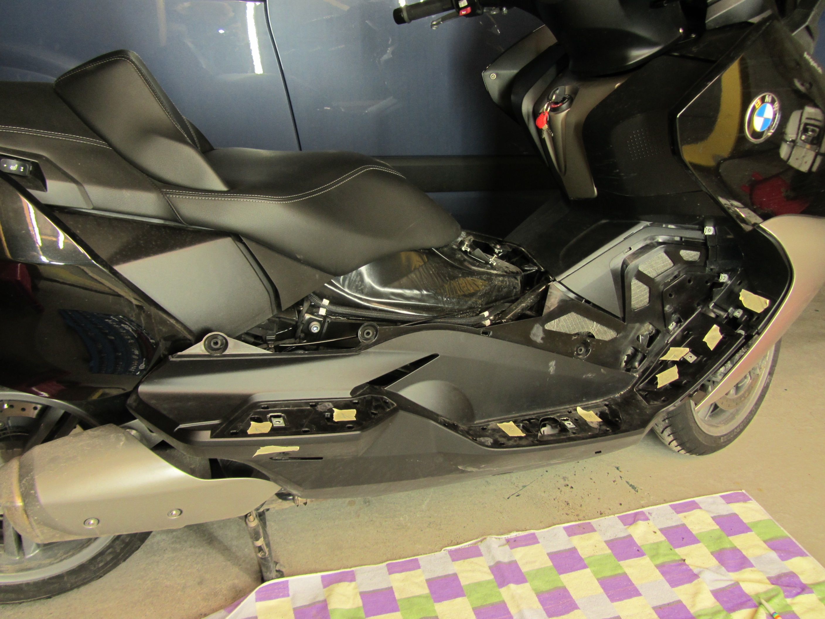 Erst muss mal die zweiteilige rechten Seitenverkleidung ab. Dazu waren glaublich ca. 17 Schrauben zu entfernen.