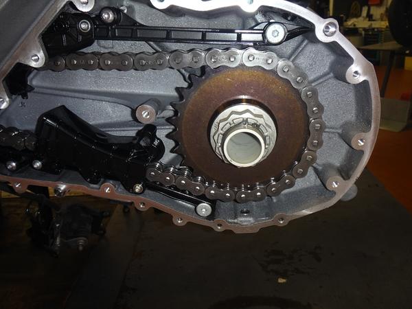 Also hinten links unten an der Schwinge? Darin läuft die Kette und dort gibt es auch Öl (aber keine Variomatik).