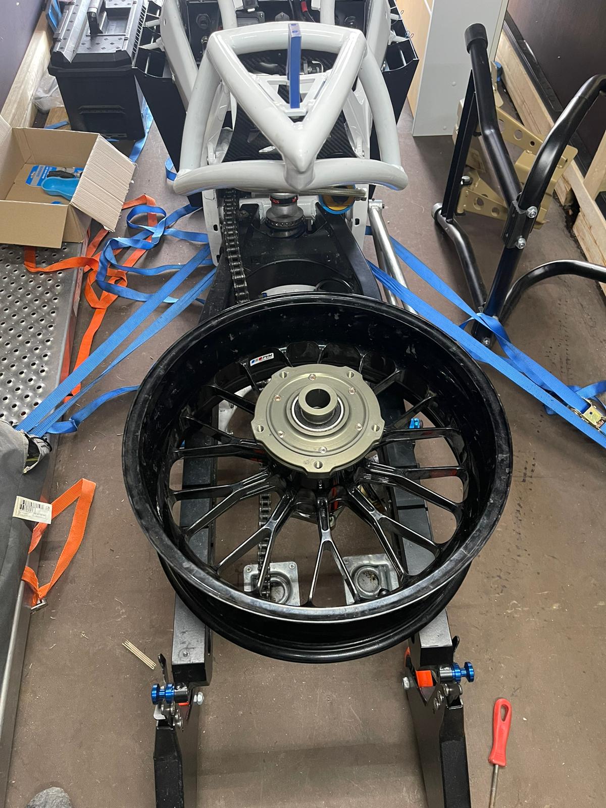 1. Radstand verkürzen, d. h. Schwinge muss nochmal bearbeitet werden, da der Entlüftungnippel der Bremsanlage mit dem Unterzug kollidiert.