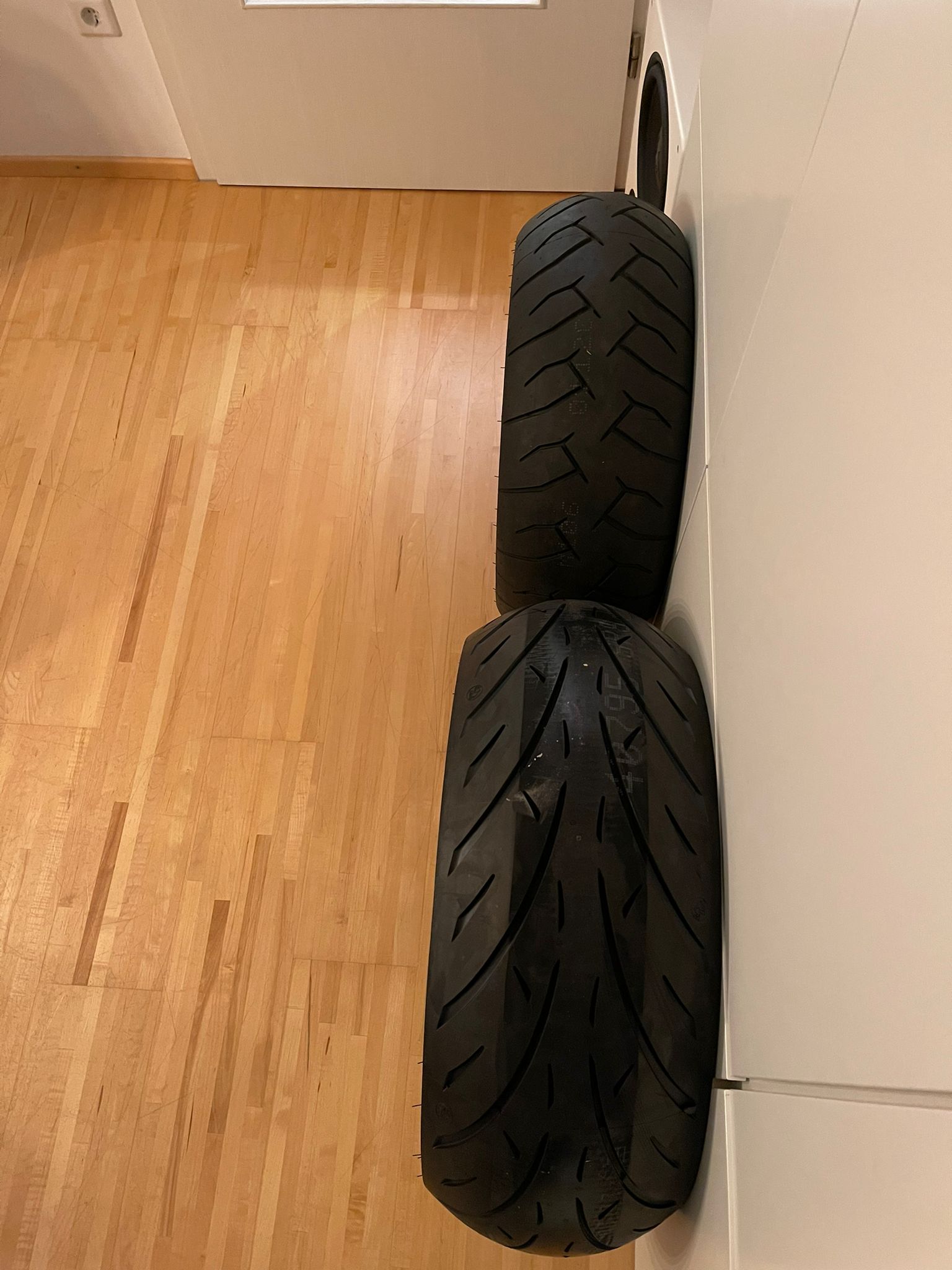 Da ist ein neuer Motorradreifen eingetroffen. Der ist nicht gerade leicht