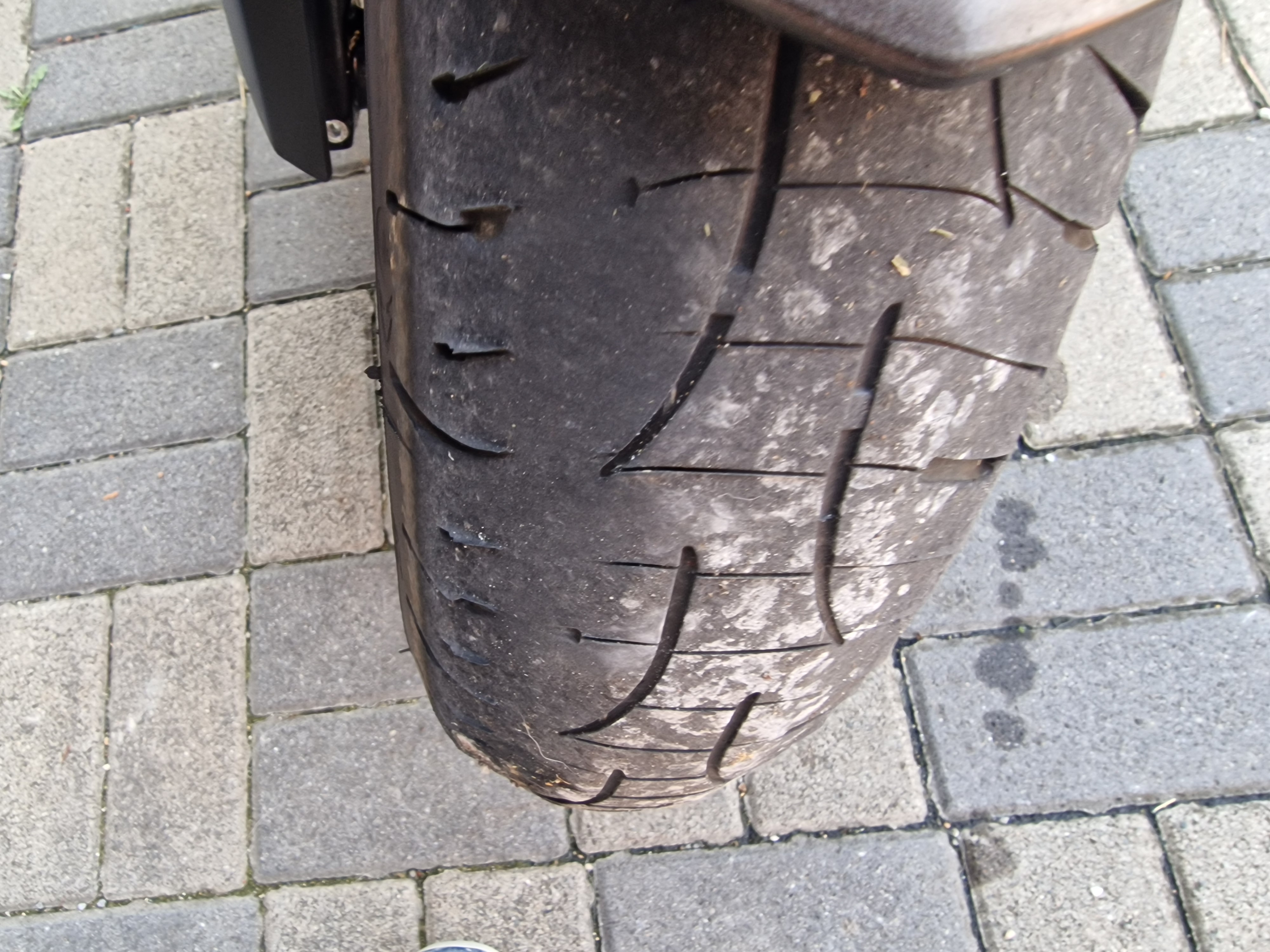 aber nach 3000 Km vorne und hinten Sägezahn, jetzt nach der Fahrt, sa der Reifen an den Flanken aus wie ein x Runden auf dem Nürburg Ring.