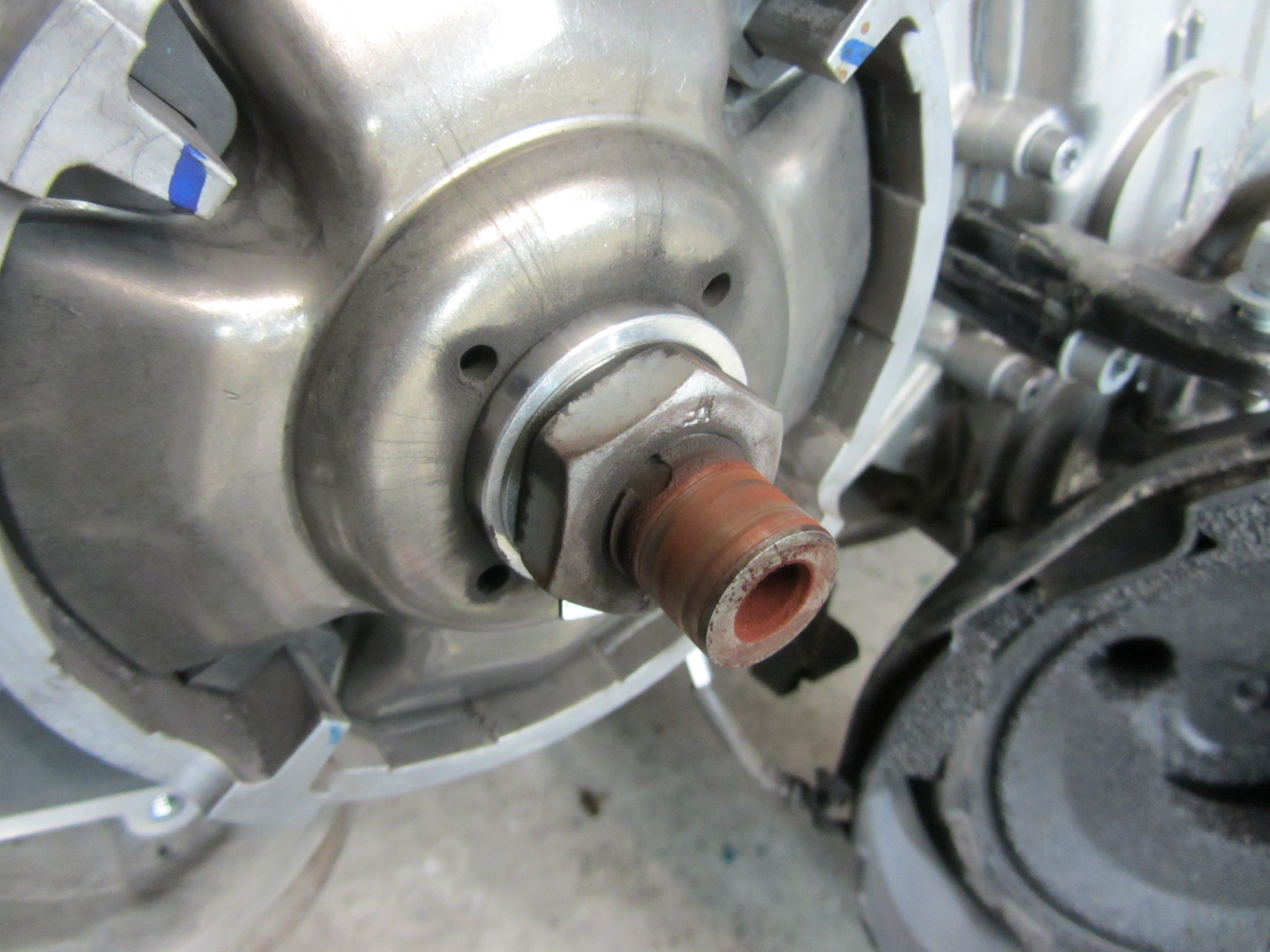 Guckst Du nachfolgendes Bild. Diese Alu-Distanzscheibe hatte ich falsch montiert. Nicht zwischen Mutter und Gegendruckplatte, wie auf dem Bild ersichtlich, sondern zwischen den Pulley-Scheiben. Total dämlich!