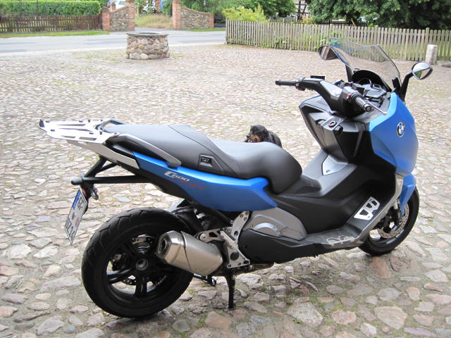 Ich finde das Topcase passt, bedingt durch die besondere Form sehr gut zum BMW Scooter. Also uns gefällst.