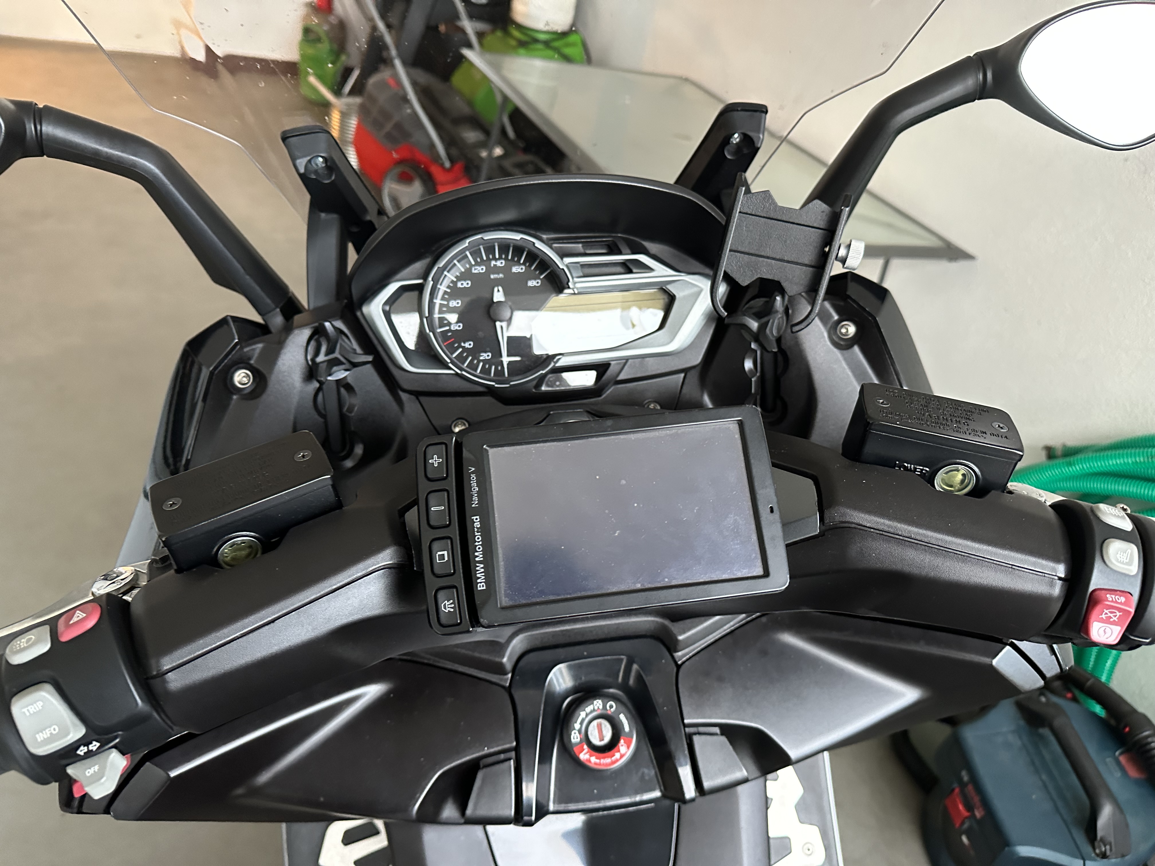 Der Bärle Navihalter Eigenbau funktioniert auch einwandfrei mit einem Original BMW Cradle. Das wollte ich verwenden, weil der Navigator V von der 1200er GS eh schon vorhanden war. Das Cradle kam von Kleinanzeigen für 55€ inclusive Versand, den Abstanshalterwürfel mit 5 cm Kantenlänge hat mein zukünftiger Schwiegersohn gedruckt.