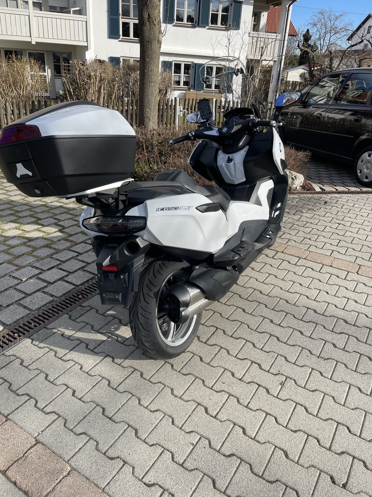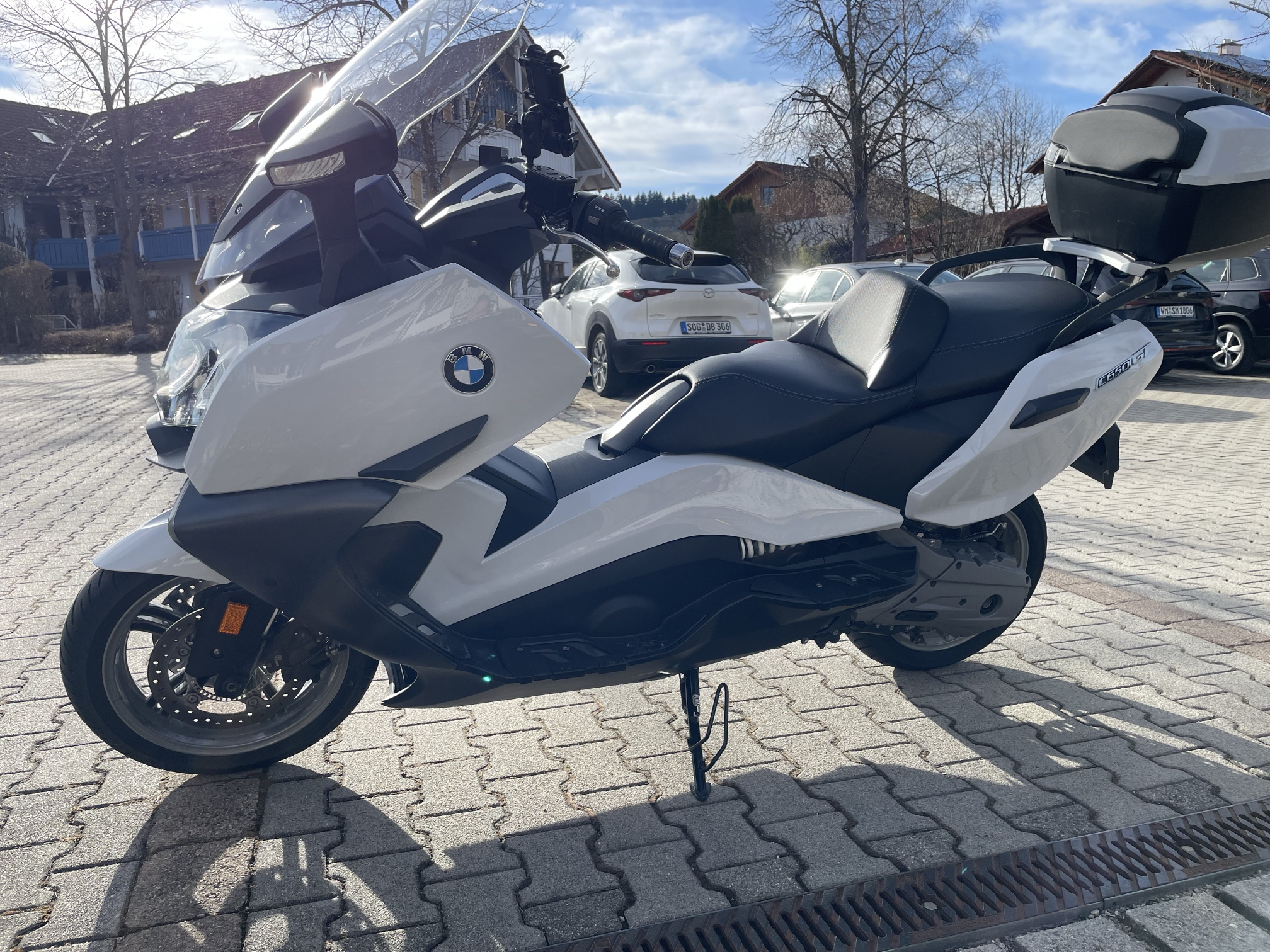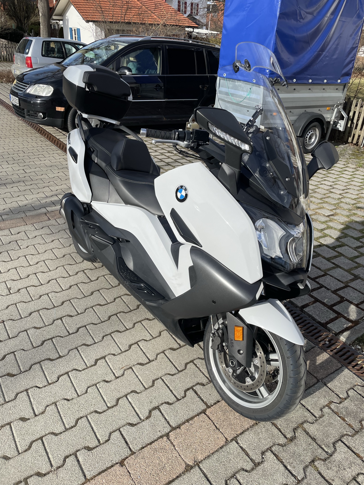 ich verkaufe meinen C 650GT, Ez. 02/2018, hat 30.000 km runter, ist unfall- und umfallfrei. Der Roller ist sehr gepflegt, wurde ausschließlich für Touren verwendet, keine Arbeits- oder Eisdielenfahrten. Als Zubehör hat er das Highline-Paket mit der niedrigen Sitzbank, also keine Sitzheizung, Griffheizung, RDC…etc. natürlich schon. Da ich eher groß bin, hab ich mir damals auch eine normale Sitzbank (mit Heizung) nachgekauft, die auch momentan drauf ist. Wer die Heizung nachrüsten möchte, braucht halt noch das Kabel unter der Sitzbank und die Armatur. Die niedrige Sitzbank ist im Preis mit drin, geb ich mit. Außerdem sind wie auf den Bildern zu sehen Sturzpads verbaut, ein RAM-Quickgrip als Handyhalter, eine MRA Spoilerscheibe und ein original BMW Topcase. Eine Mitteltunneltasche ist auch dabei. Was man nicht sieht, ist der verbaute JCosta Variator (…merkt man aber beim Fahren