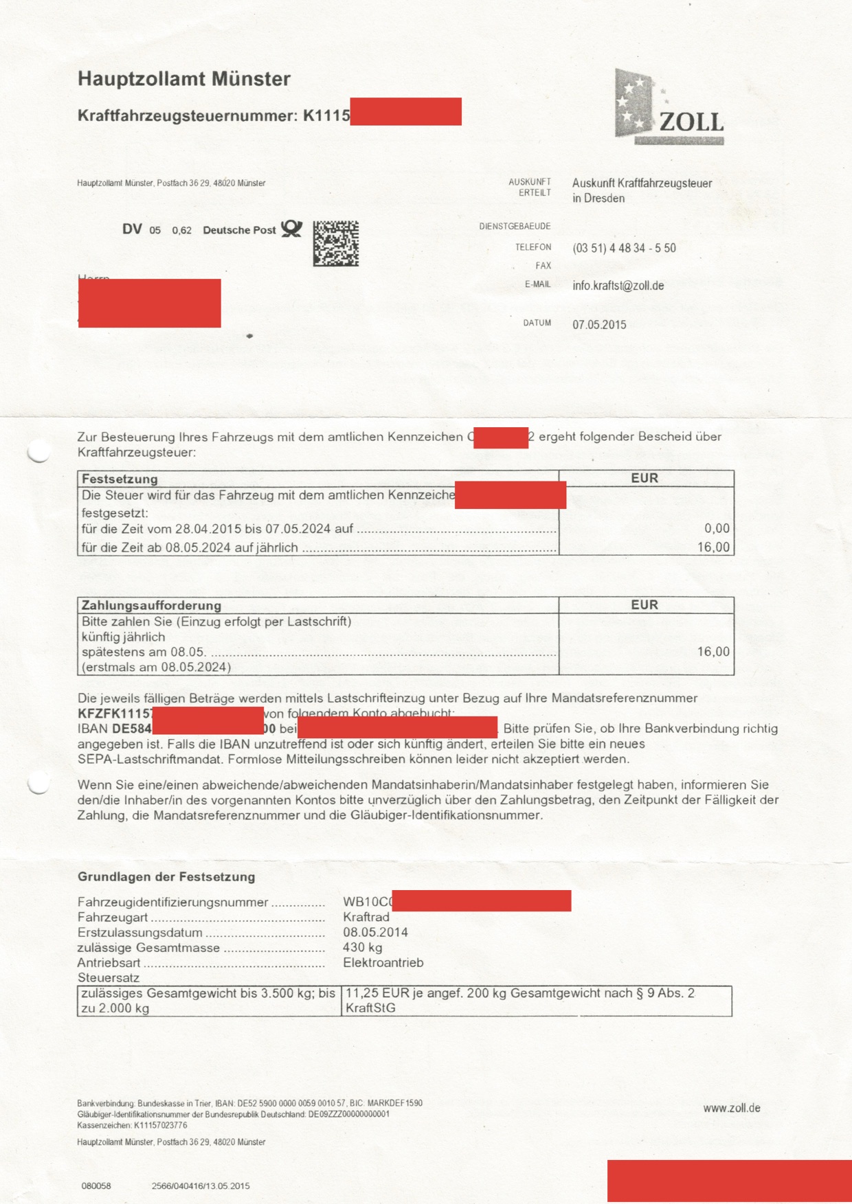 Aber meine Freunde vom Zoll sind schon der Meinung, dass ich 2024 16 Euro pro Jahr bezahlen soll.