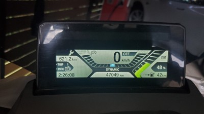 So, nachdem das Wetter in den nächsten Tagen eher schlechter wird habe ich heute mal eine erste Probefahrt gemacht, Akku 100%, 148V, km-Stand 46.991, angezeigte Reichweite 76km (Das BMS rechnet offensichtlich noch mit der Historie der kleinen Akkus):