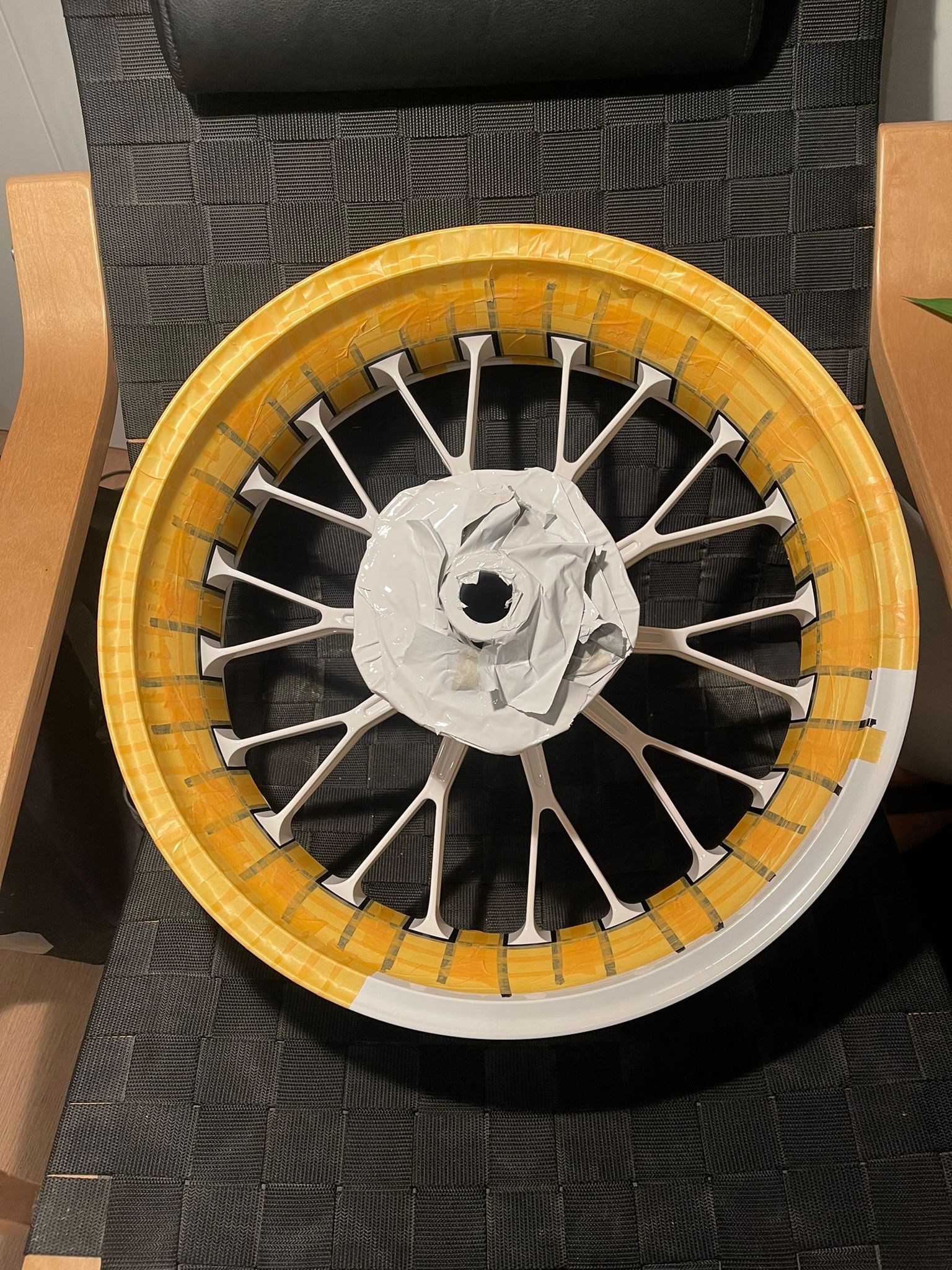 Reifen ist aufgezogen (1,2 bar) … noch zuviel aber so rollt sie später erst einmal wieder gescheit