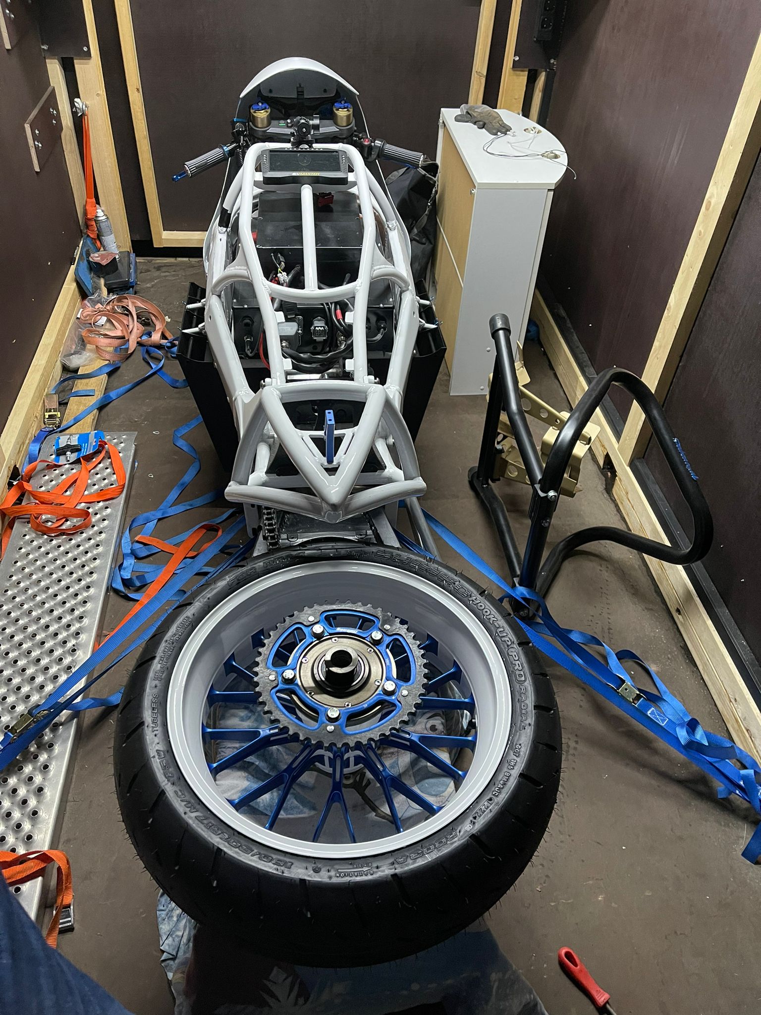Reifen ist aufgezogen (1,2 bar) … noch zuviel aber so rollt sie später erst einmal wieder gescheit 😉
