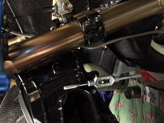 Nachdem ich letztes Jahr nochmal die Gabel um 2cm weiter durchgesteckt habe, habe ich heute nochmal 2 Schalter für Lüfter und Beleuchtung an die Armature geschraubt und weiter mit dem Kühler gemacht ( Gewinde nachschneiden usw.)