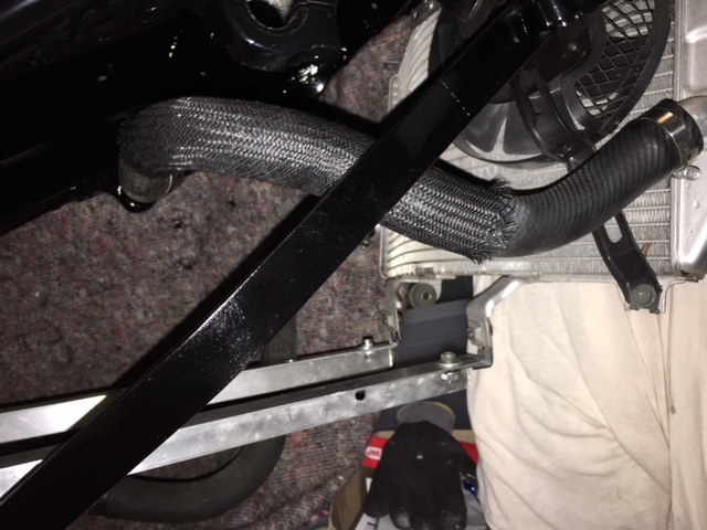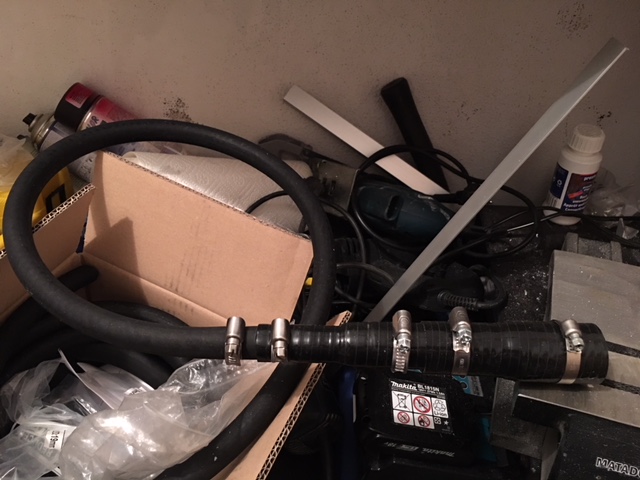 Das schöne Wetter vom letzten We genutzt um die Kühlwasserleitung fertig zu stellen. Jetzt fehlt quasi nur noch ein Blindstopfen für den 3. Eingang beim Kühler und der Abgang zum Wasserausgleichsbehälter, der auch noch angebracht warden muss.