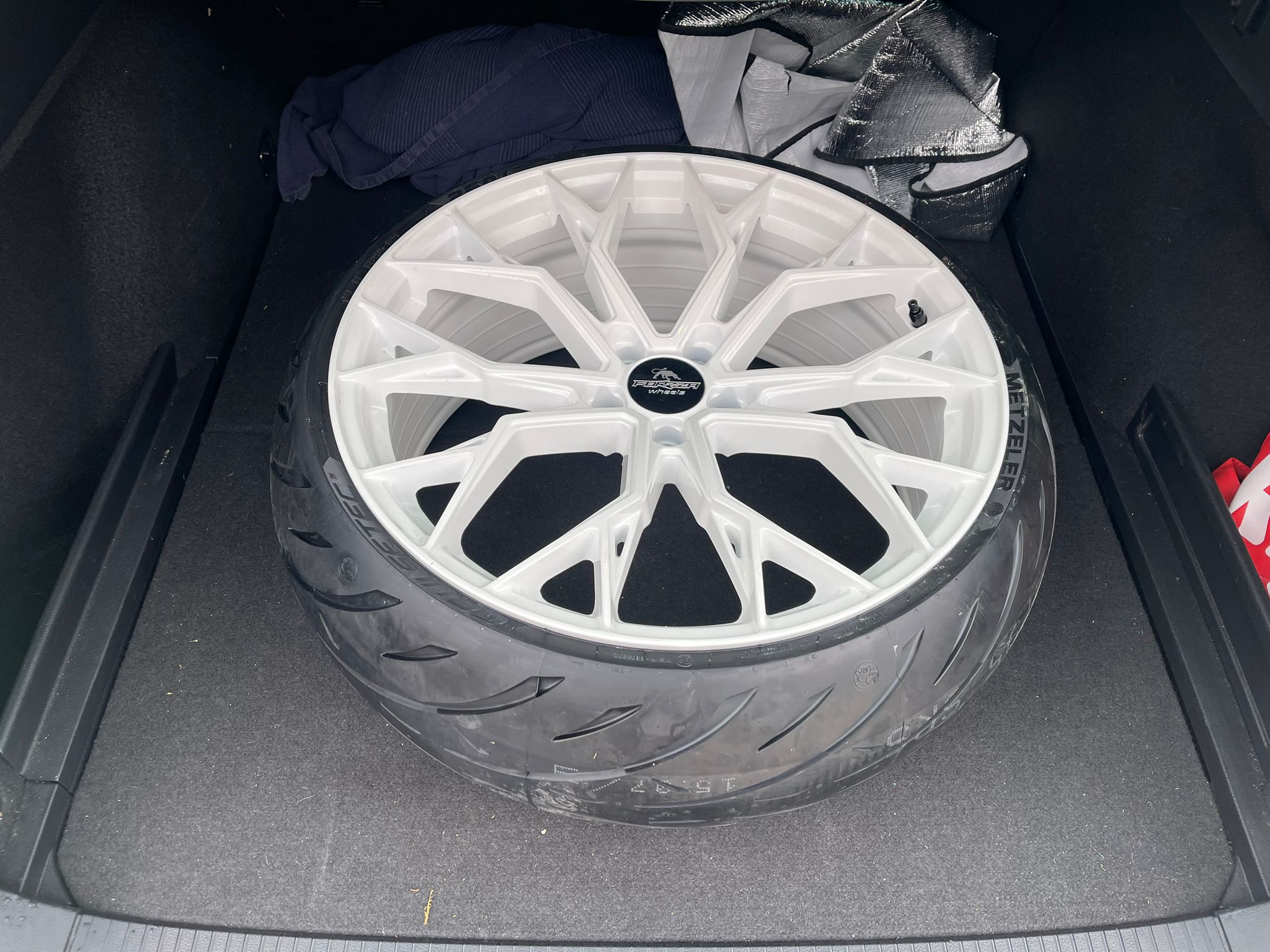 Das Aufziehen des Motorradreifens auf die Autofelge hat schlappe 45 Minuten gedauert aber jetzt sitzt er!