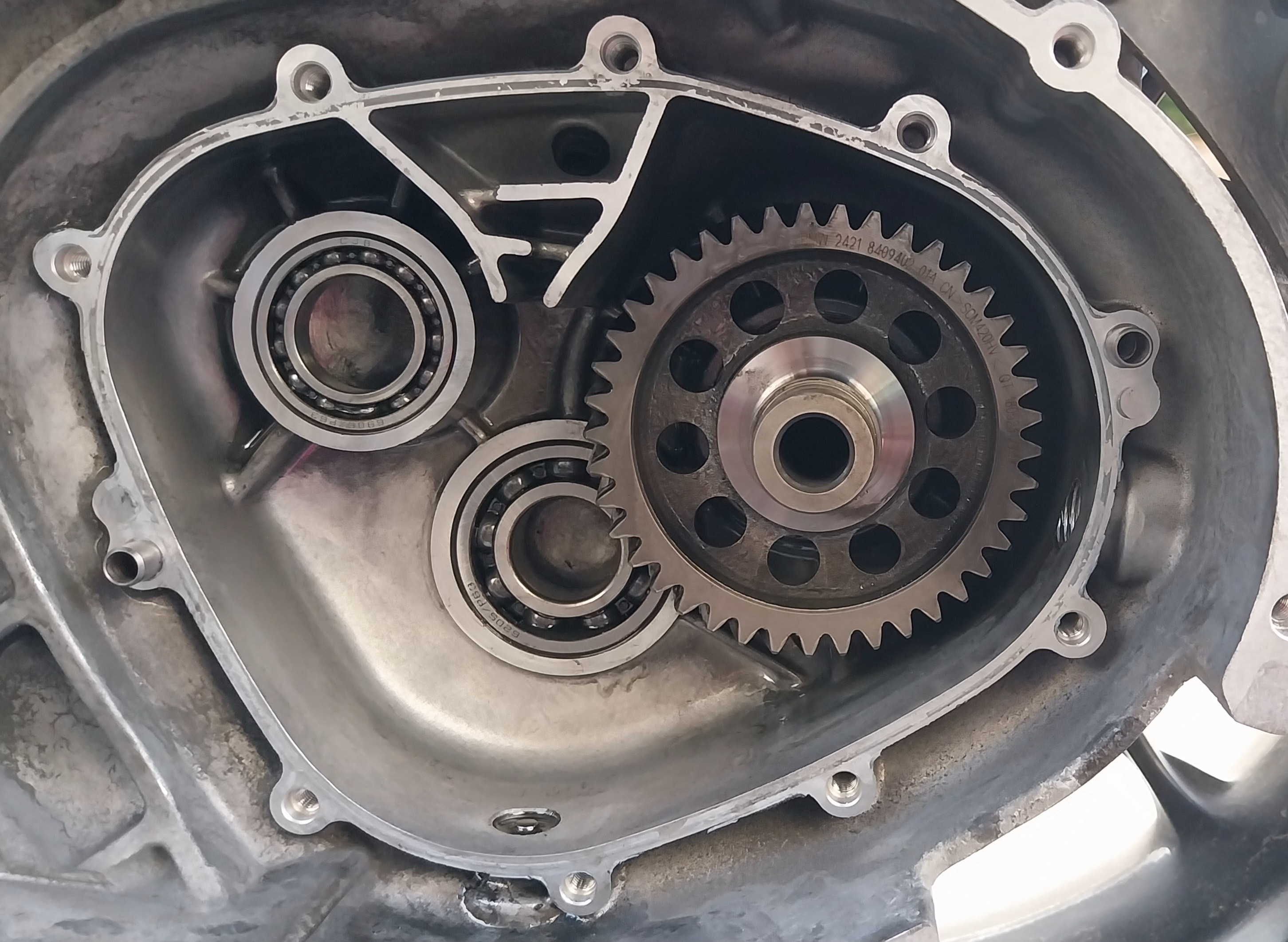 Habe bis zum Getriebe alles schon auseinander gehabt. Wenn nur das Getriebe verbaut ist und ich an dem Hinterrad drehe, dann läuft alles rund. Habe ich aber die Variomatik verbaut und den Variomatikdeckel wieder verschraubt so entstehen die Geräusche.