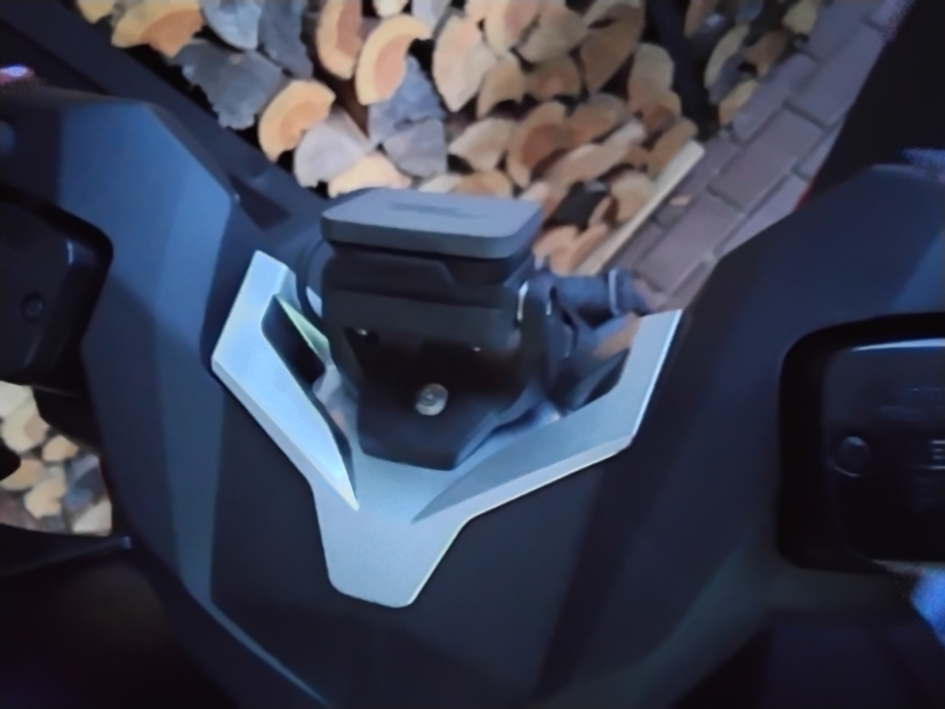 Da ist aber an der silbernen !2mm Querstange noch der Halter für mein Garmin zumo xt montiert.