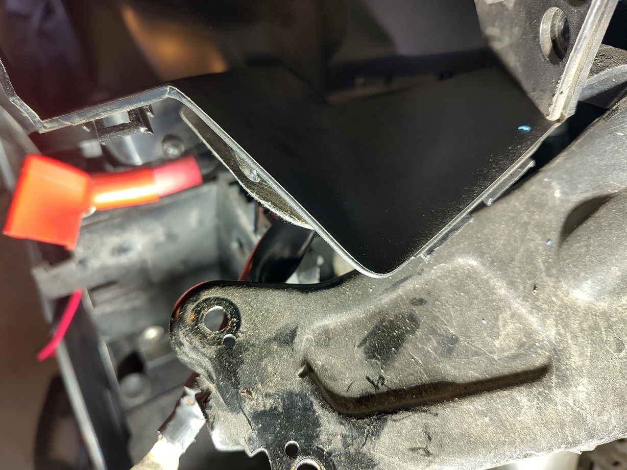 Das zweite Bild zweigt die rechte Seite von oben, das rote ist der Pluspol der Batterie. Da sieht man die Ösen, die man nach unten drücken muss - drei Stück gleichzeitig