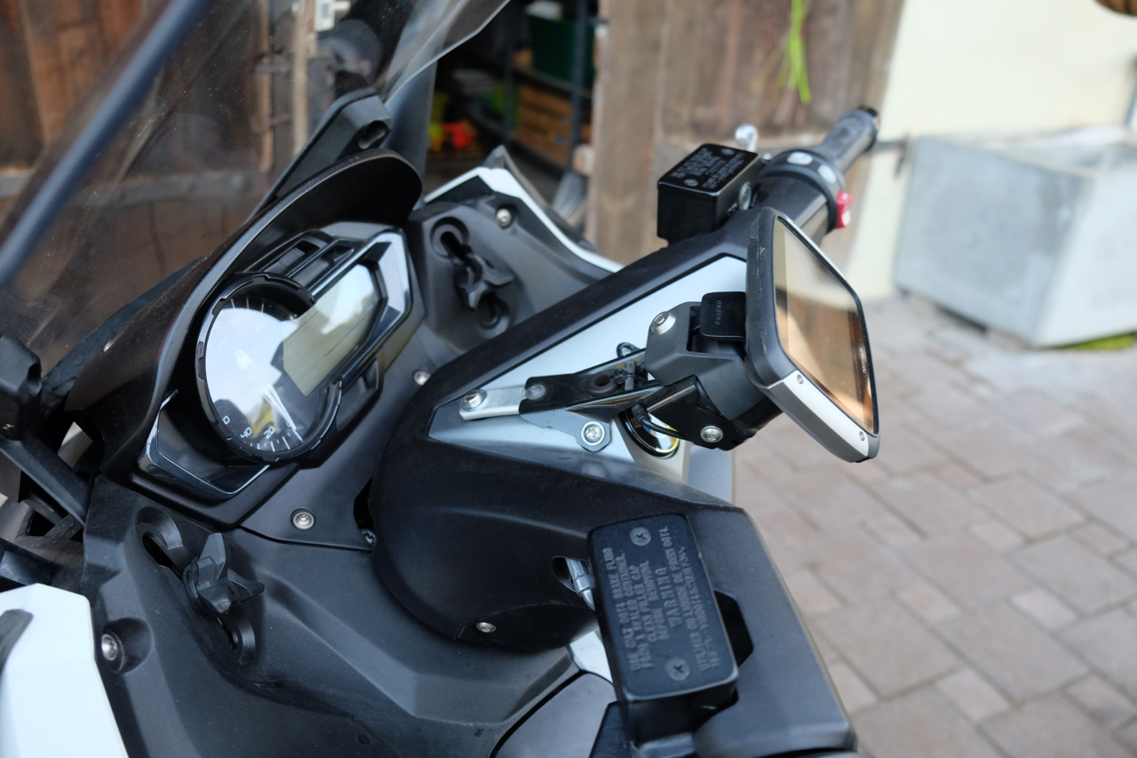 Ich war von Anfang an mit dieser Lösung zentral am Lenker sehr skeptisch. Die ersten Ausfahrten bestätigten meine Meinung, viel zu nahe, man muss wenn man draufschaut den Blick nach unten machen und somit weg von der Strasse,für mich ein No Go!!!!