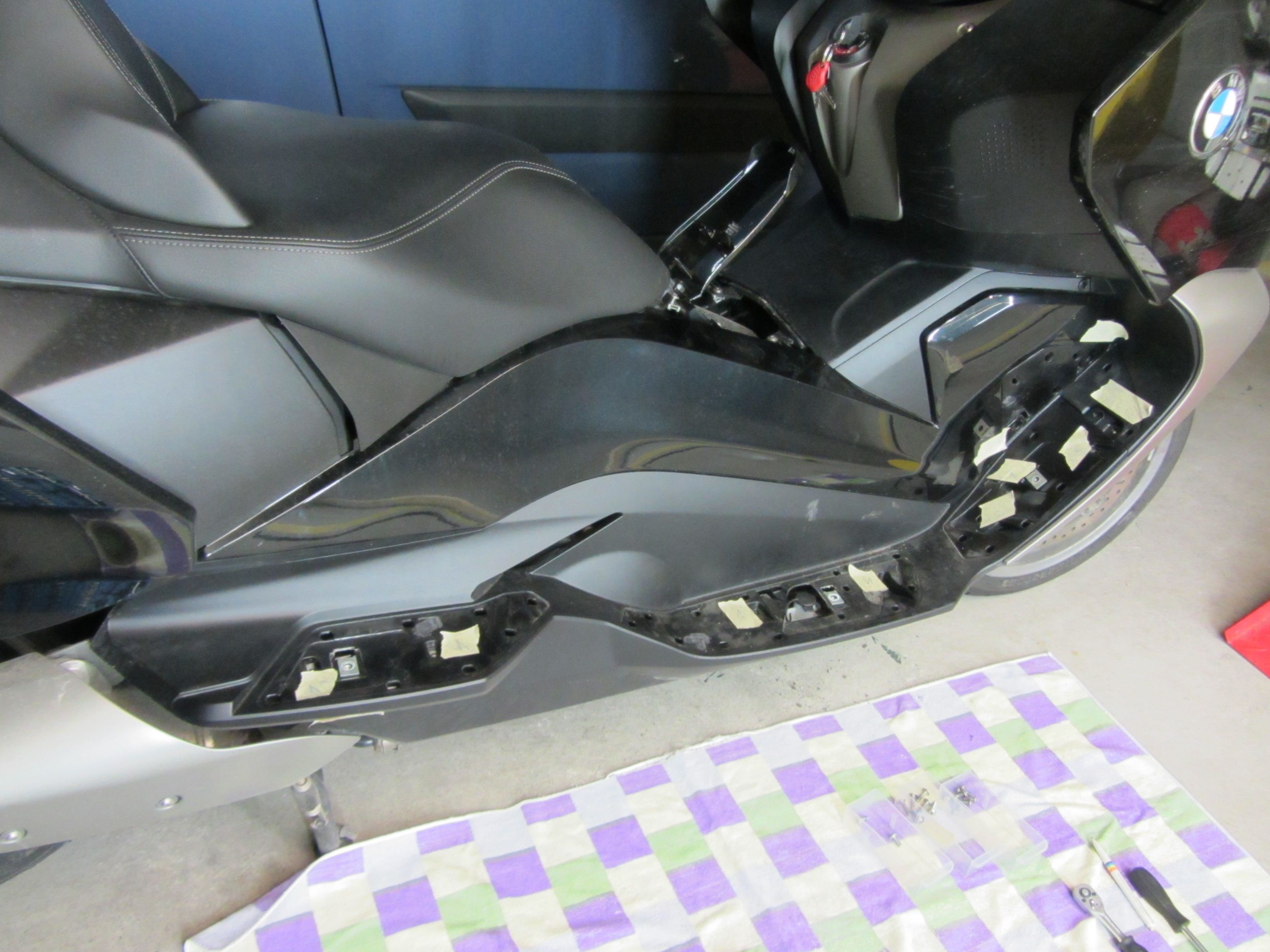 Erst muss mal die zweiteilige rechten Seitenverkleidung ab. Dazu waren glaublich ca. 17 Schrauben zu entfernen.