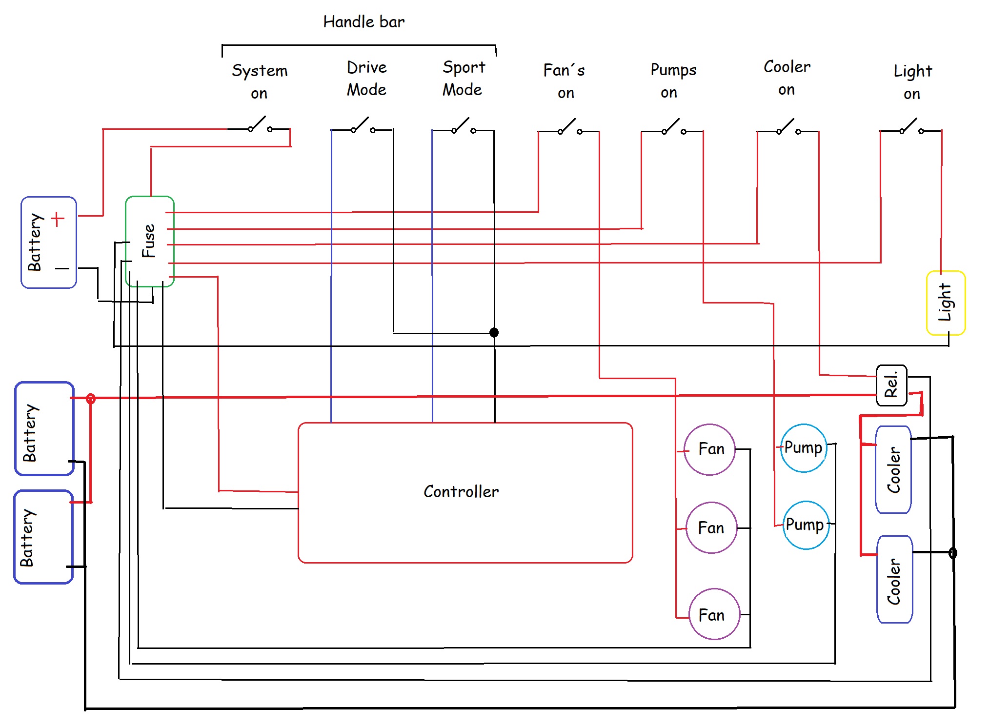 Habe aber alle Kabel vom Lenker Richtung Controllerbox verlängert. Dann habe ich noch ein paar Schalter in der Box positioniert.