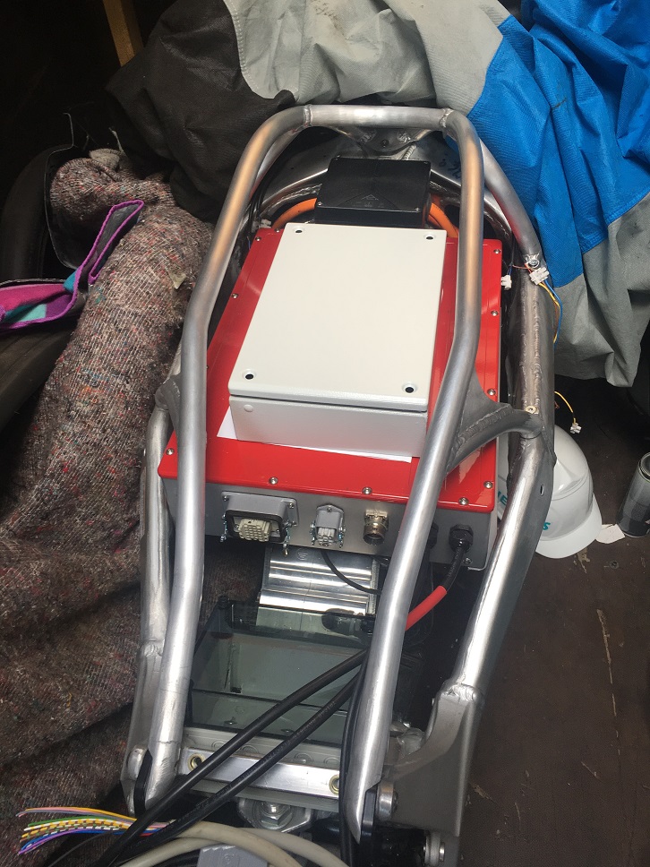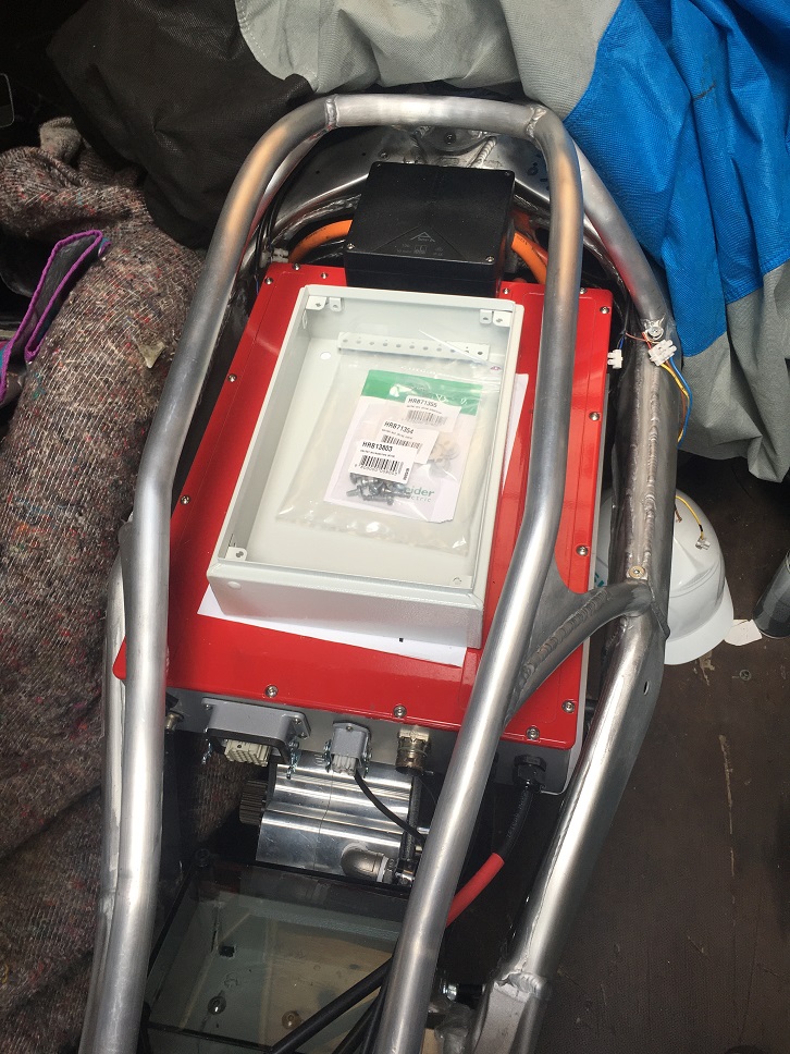 Habe einen Installationskasten gefunden, der perfekt in die Lücke zwischen Motor und Sitzbank passt.