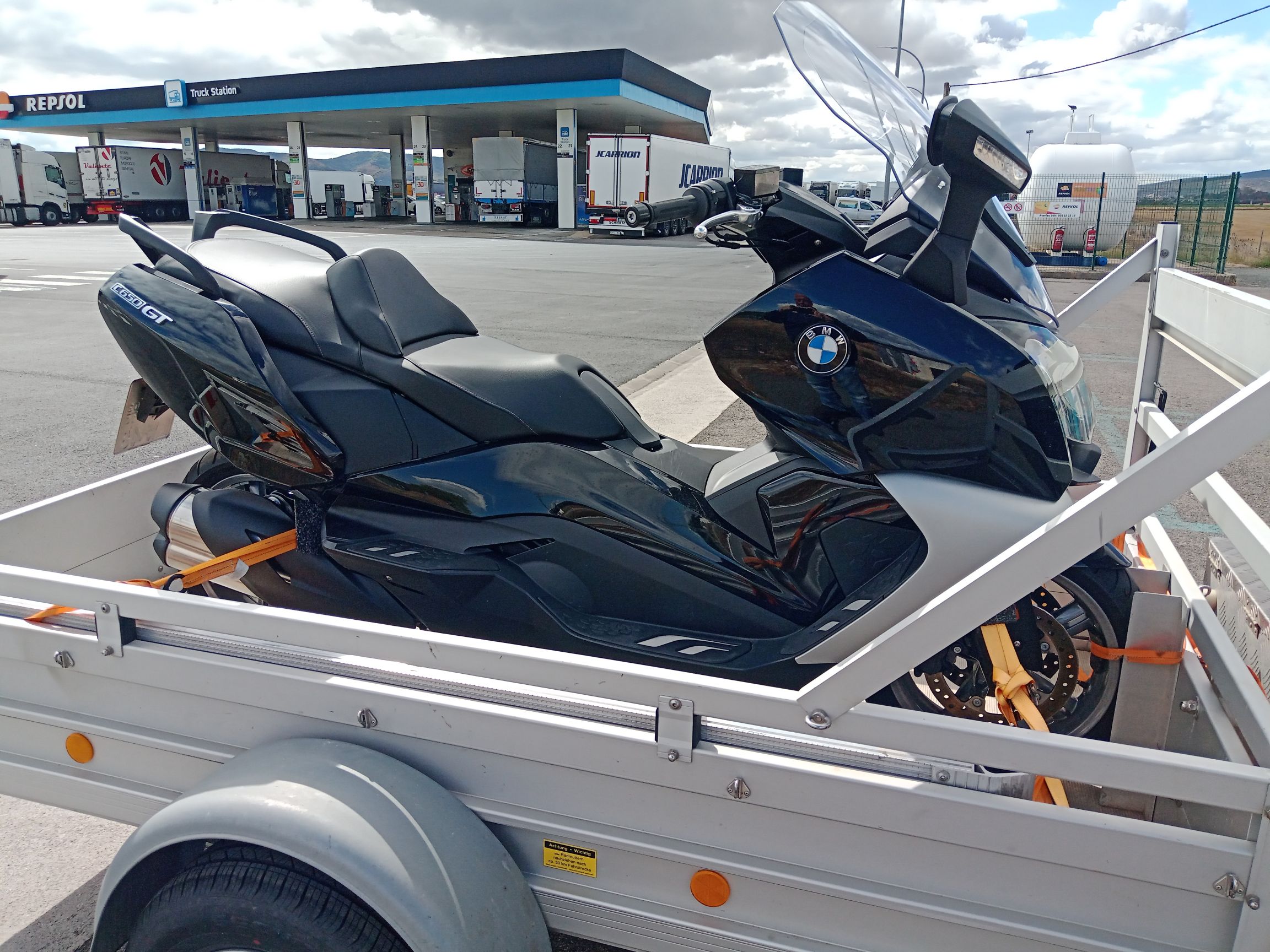 Der Piaggio Roller reichte mir nicht mehr. Deshalb hatte ich zunächst einen neuen BMW Roller mit "Bums" kaufen wollen. Von gebrauchten Zweiradfahrzeugen hatte ich aus grundsätzlichen Erwägungen immer Abstand gehalten. Ich hatte dann von der Produktionseinstellung des C650 im Jahr 2020 erfahren. Bei meiner Suche im September dieses Jahres bin ich auf einen gebrauchten Roller mit nur 2.536 Kilometern gestoßen. Der einzige fast Neue in Europa. Er stand in Konstanz. Also den Trailer an mein Ford Coronamobil gehängt, 2.100 km abgespult, Roller aufgeladen und gleich wieder zurück. Z. Zt. wird der Roller für Portugal legalisiert. Wenn die Portugiesischen Papiere alle klar sind, erwarten mich Touren durch ein wunderschönes und abwechslungsreiches Land.
