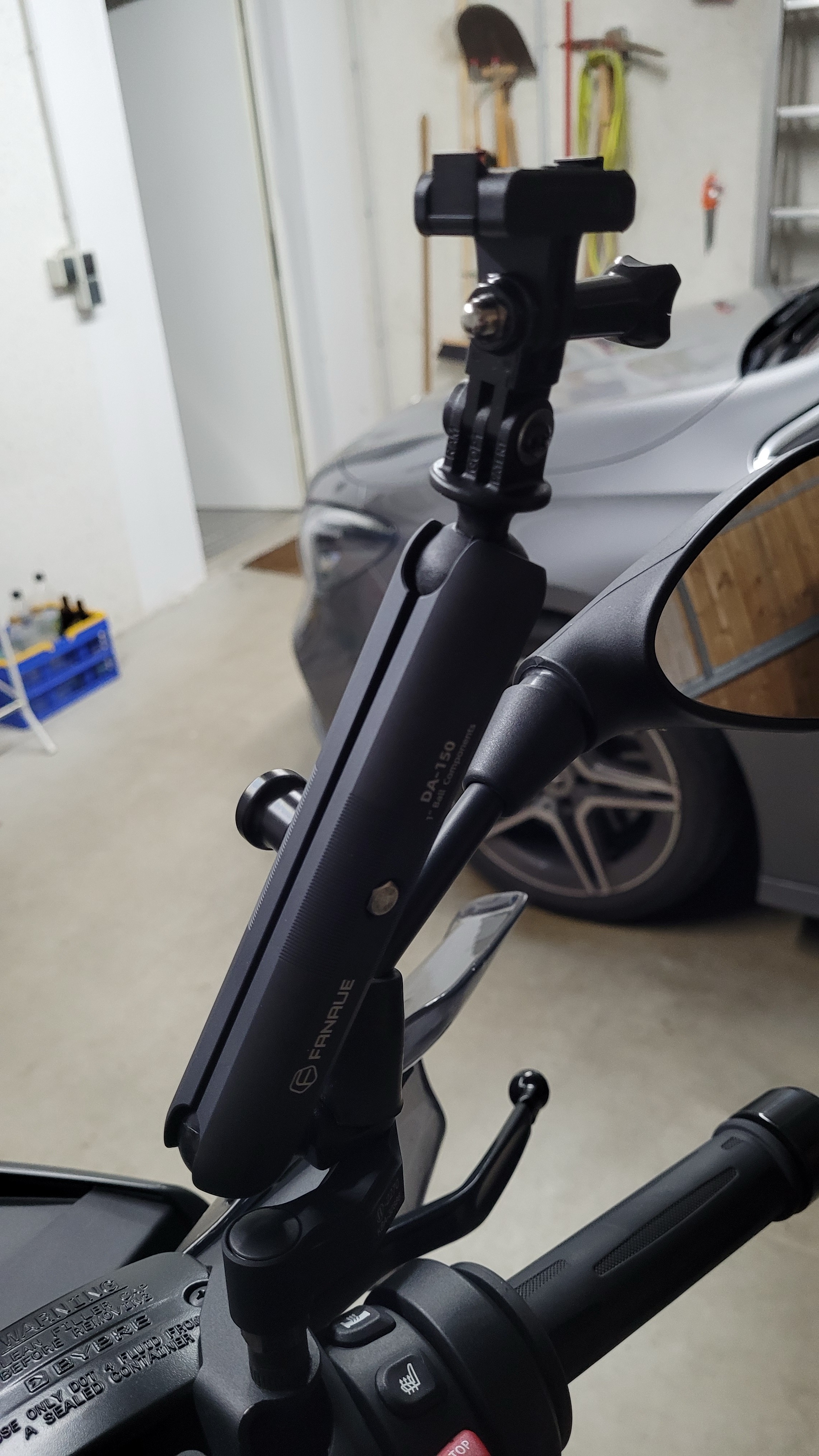 RAM-Mount an Spiegelhalterung (Wunderlich Spiegelverbreiterung).