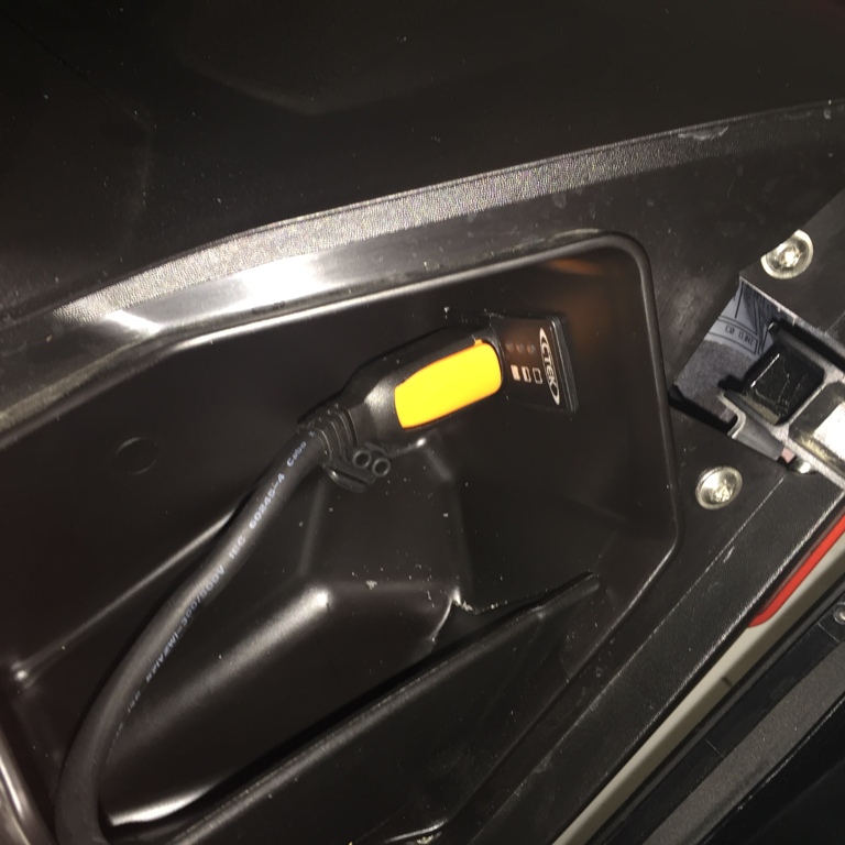 5 Löcher (1 für die USB-Steckdose und 4 für die CTEK-Steckdose) mit meinem Drehmel gebohrt. Danach mit einem Hochgeschwindigkeit Fräser und dem Dremel die Öffnungen passend gefräst und die Kanten mit einer Schlüsselfeile entgratet.