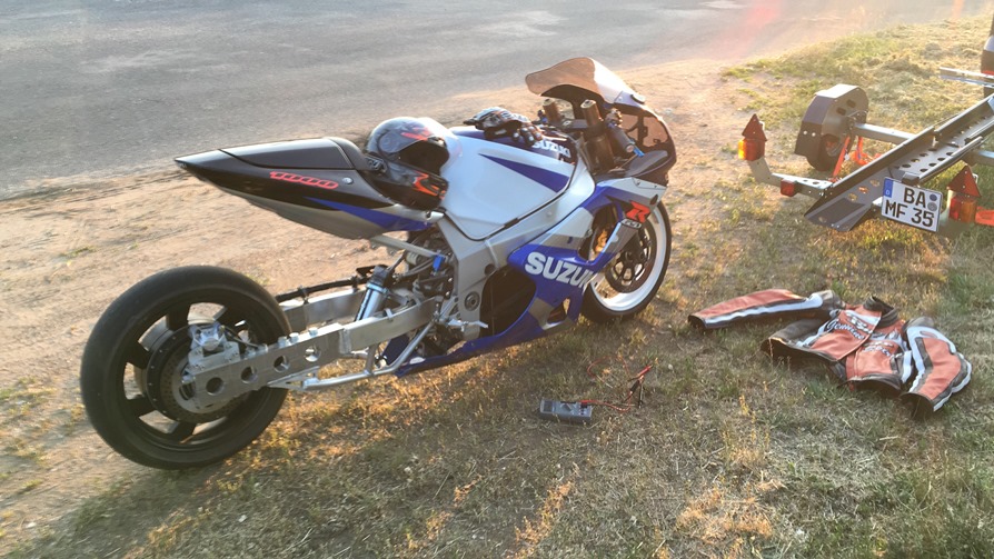 Als Notlösung habe ich eine Getriebedefekte GSXR 1000 genommen und dort einen untermotorisierten Radnabenmotor eingebaut.