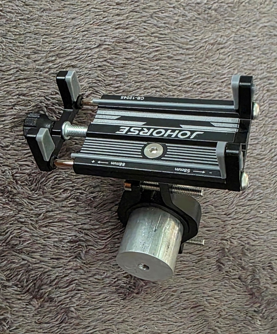 Ich habe die kleine Metallstange des Smartphone-Cradle (D=11mm) gegen eine 25mm-Alustange ausgetauscht, um handelsübliche Fahrrad-Handyhalter verwenden zu können.